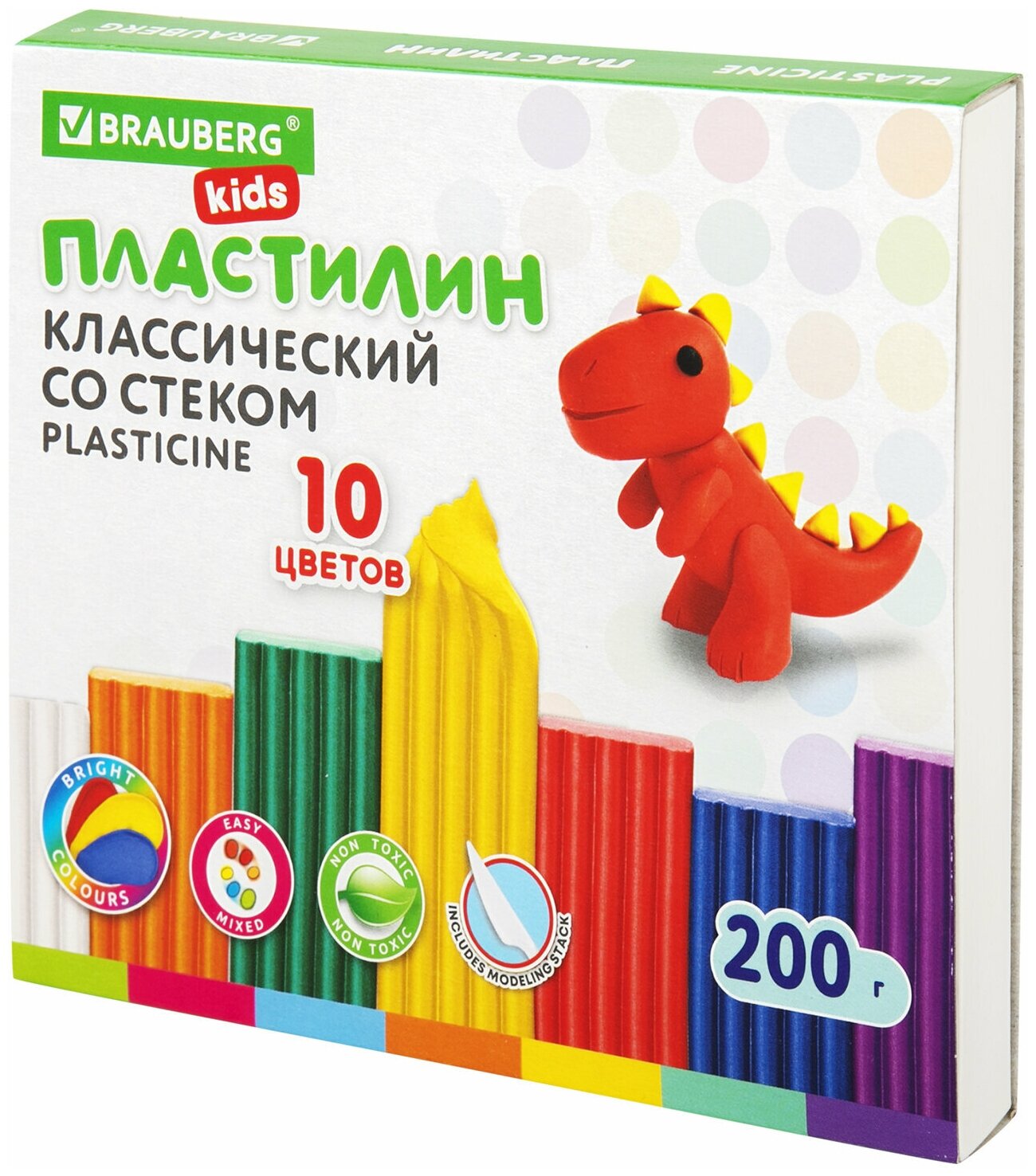 Пластилин BRAUBERG обладает высоким качеством, прекрасными пластичными свойствами и мягкостью, легко принимает нужную форму. Не токсичен, безопасен для детей. Производится из белой глины (каолина) с добавлением вазелина, натурального воска, парафина.