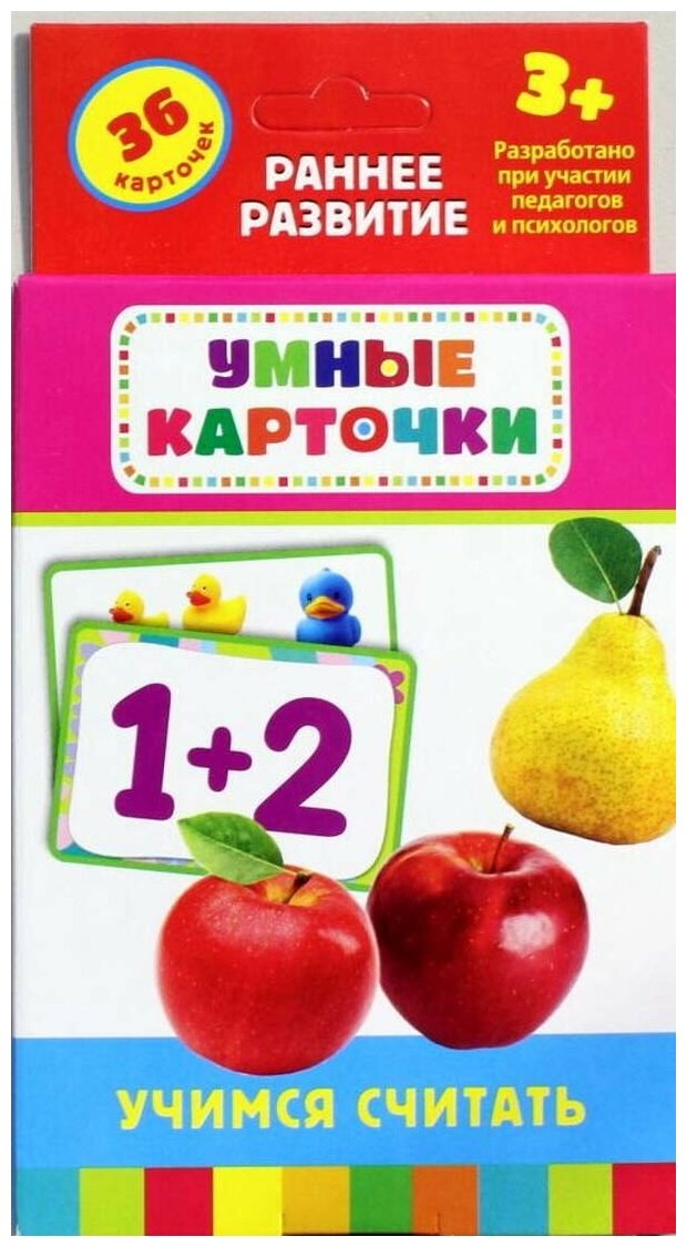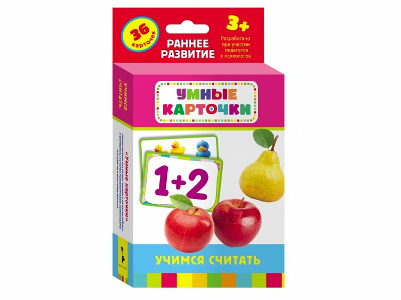 Комплект "Умные карточки" для детей от трех лет - набор из 36 карточек с красочными фотографиями, понятными, интересными заданиями, занимательными играми и методическими рекомендациями. С набором "Учимся считать" ребенок научится решать простые примеры на сложение и вычитание.