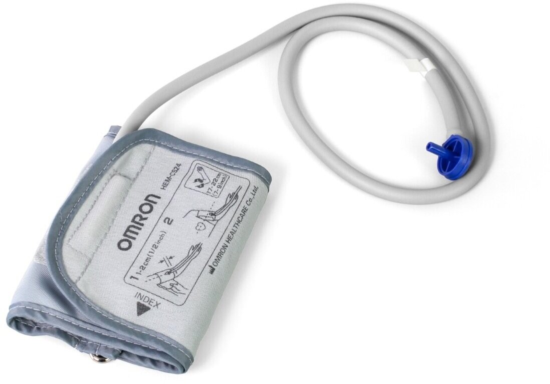 Малая (детская) компрессионная манжета Omron CS2, модель HEM-CS24, для рук с охватом плеча 17 — 22 см., разработана для детей и взрослых хрупкого телосложения. Проблемы с артериальным давлением возникают у людей разных возрастов, в том числе и у детей, и крайне важно проводить измерения при помощи идеально подходящей для этого манжеты. Детская манжета Omron CS2 обладает всеми преимуществами стандартной манжеты Omron и предназначена для рук с длиной окружности плеча 17 — 22 см. Детская манжета Омрон подходит для автоматических тонометров Omron с фиксацией на плече только следующих моделей: Omron M2 Basic (модель 2016 г.), Omron M2 Classic (модель 2016 г.), Omron M3 Eco, Omron M3 Expert, Omron M3 Family, Omron M6. В комплект поставки прибора входит набор штекеров-переходников для подключения к различным электронным блокам тонометров.
