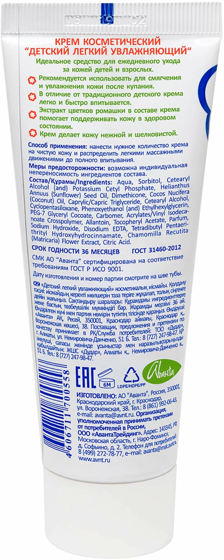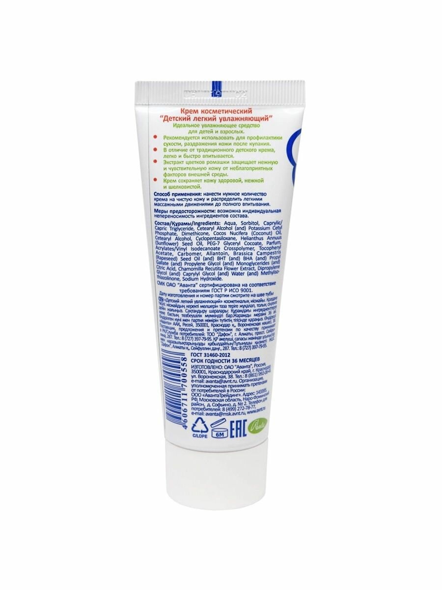 Крем Аванта детский легкий увлажняющий 75 мл (1117)