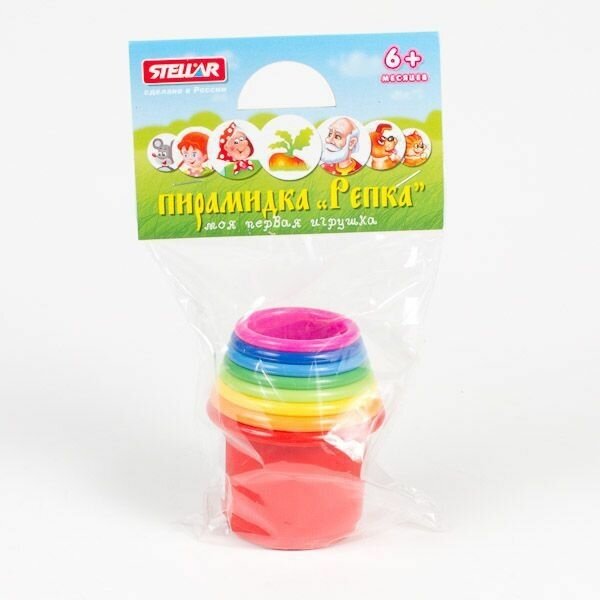 Большая пирамидка Stellar "Репка" привлечет внимание вашего малыша. Пирамидку можно собирать из чего угодно. И вот яркий пример пирамиды из стаканчиков, которая в собранном виде может достигать весьма внушительных размеров. Пирамидка, выполненная из полипропилена, включает 8 круглых стаканчиков разных цветов и размеров. Стаканчики оформлены наклейками с изображением персонажей русской народной сказки "Репка".
