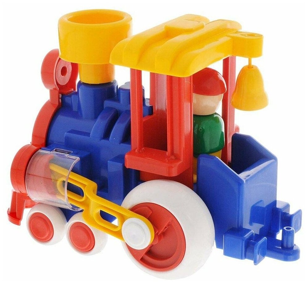 При движения у паровозика крутятся поршни, тем самым (несмотря на яркий и простой вид) приближая его к оригиналу и делая чуточку реалистичнее. Паровозик выполнен из высококачественных материалов и не несет вреда здоровью детей. Он может стать новой излюбленной игрушкой ребенка, с которой можно играть дома или брать с собой в гости.