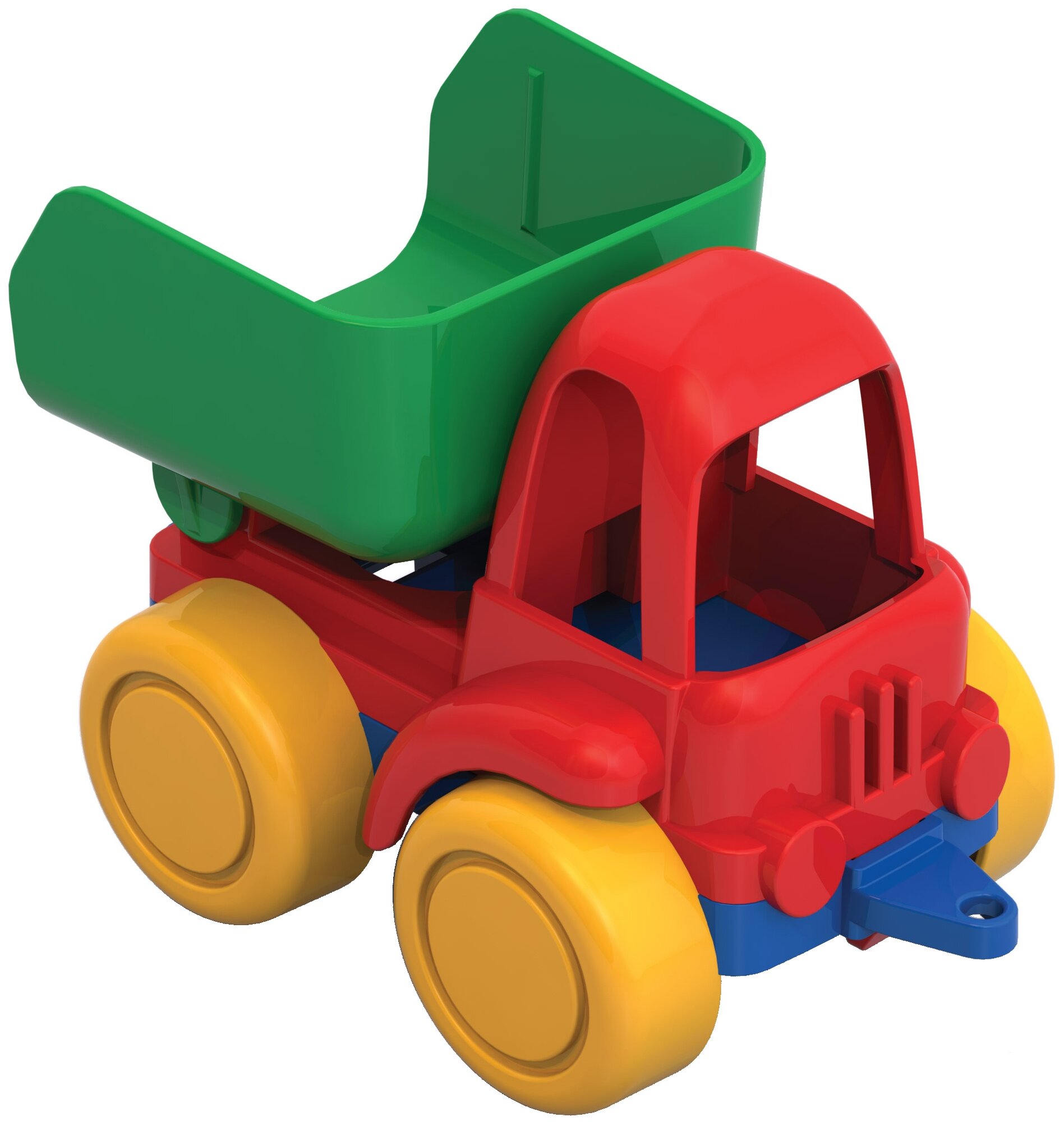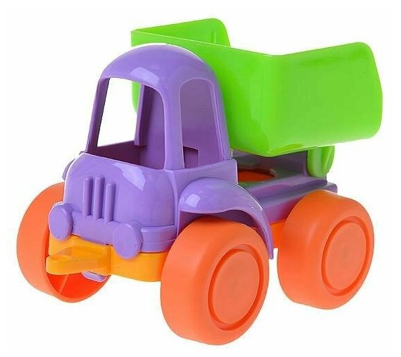 С этим самосвалом сможет играть даже годовалый малыш. Он небольшой, его будет удобно держать в руке и катать. У него поднимается и опускается кузов, с ним будет интересно играть в песочнице. Самосвал изготовлен из качественной и безопасной пластмассы, его конструкция очень проста, в ней нет мелких элементов, так что Вы можете быть уверены в безопасности этой игрушки для Вашего малыша.