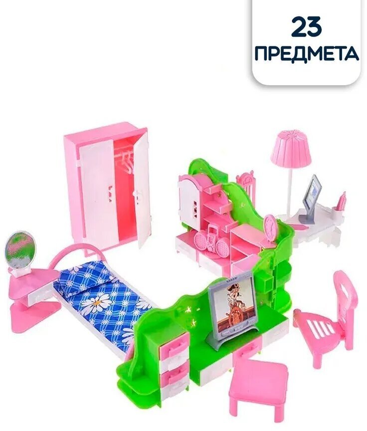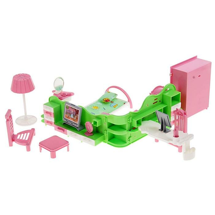 | Состав набора | игрушечная кроватка,стол,маленький столик,стульчик,лампа,тумбочка,другие аксессуары |