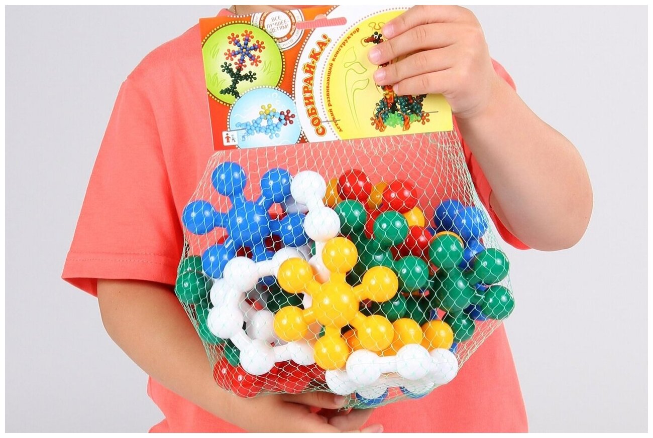 Необычная форма деталей конструктора и его цветовая гамма привлекут внимание Вашего ребенка. Благодаря простому и удобному способу конструирования Ваш юный фантазер легко сможет собирать оригинальные и интересные фигуры. Конструктор Собирай-ка развивает воображение, образное мышление, фантазию, творческие и познавательные способности. Конструируя, ребенок развивает мелкую моторику, наблюдательность и логику.