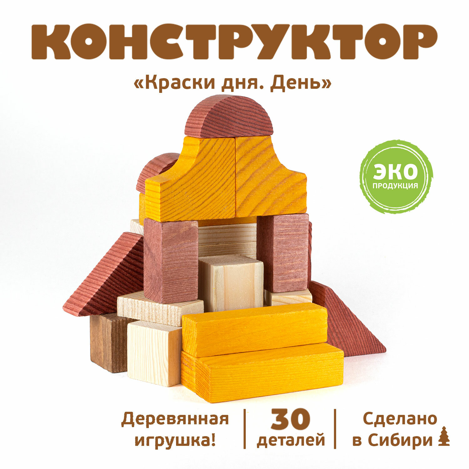 Дети дошкольного возраста, особенно мальчишки, обожают складывать из деревянного конструктора целые города, в которых есть и дома, и замки, и башни, и даже мосты с дорогами. Такая игра особенно развивает пространственное мышление, архитектурную фантазию, умение использовать форму предмета, моторику, координацию движений. Деревянный конструктор Томик Краски дня. День - удобный дидактический материал. Деревянные детали помогают ребенку выучить названия цветов и геометрических фигур, и даже освоить законы физики (показать, что с треугольника кубик упадет). В конструкторе Краски дня издатели постарались ввести в игру новые оттенки - оттенки времени суток. Утром, днем и вечером все краски окружающих нас предметов меняются - и с помощью этого конструктора можно строить изнывающие от полуденной жары города.