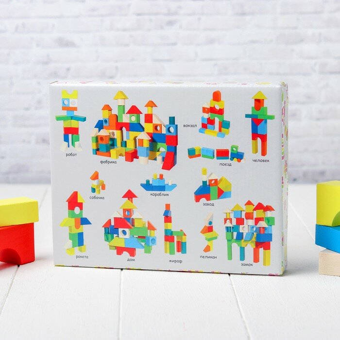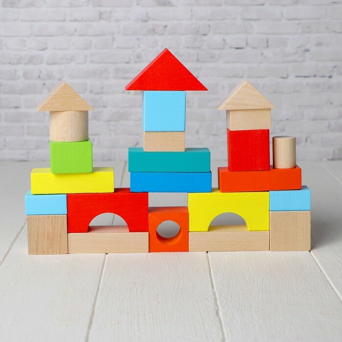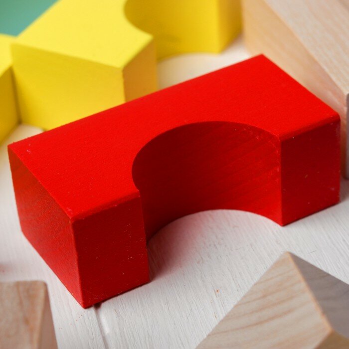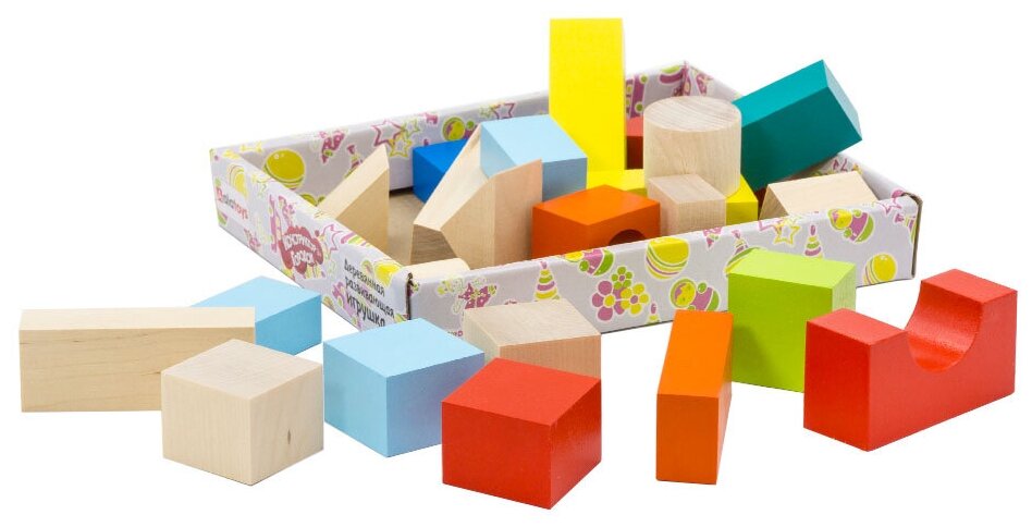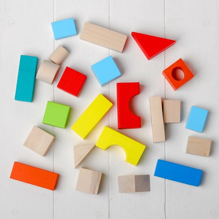 Конструктор состоит из 23 деталей различных форм. Часть конструктора окрашена в яркие цвета, а вторая часть нет. Из деревянного конструктора можно сооружать города с домами, башнями и другими постройками. С помощью таких игр у ребенка развивается пространственное мышление, воображение, творческие способности и мелкая моторика. С помощью такого конструктора ваш малыш станет настоящим строителем.
