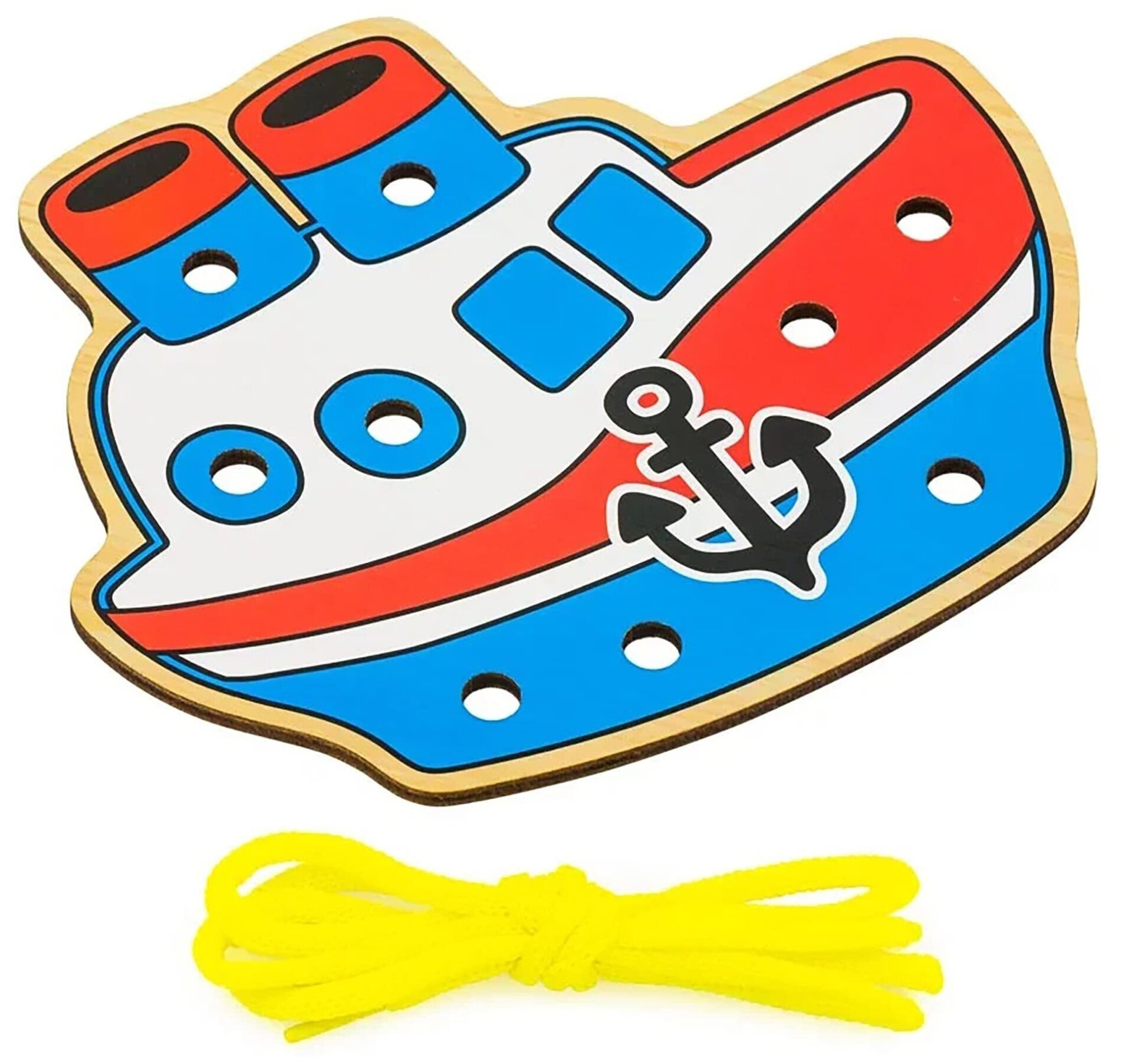 Шнуровка Кораблик Алатойс (Alatoys) - развивающие деревянные игрушки