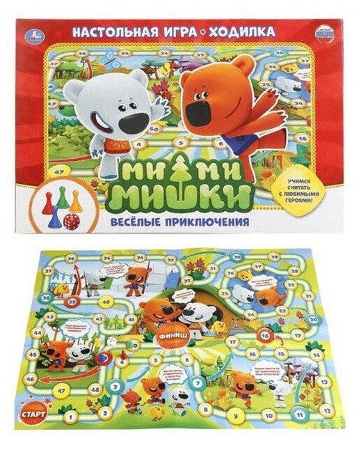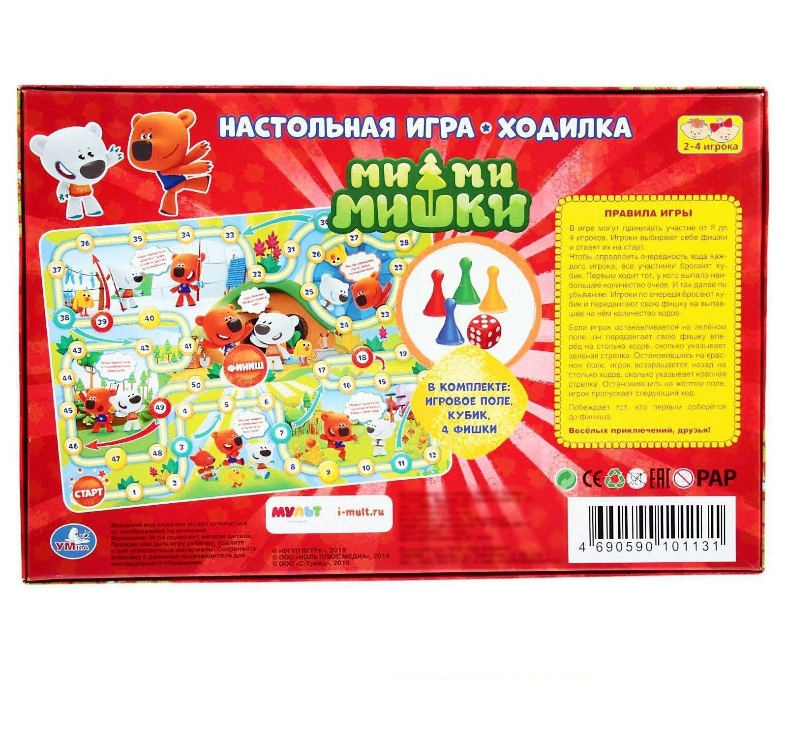 Настольная игра-ходилка Веселые приключения из серии Ми-ми-мишки поможет небольшой компании ребят весело и с пользой провести время. Забавные медвежата из популярного мультфильма Ми-ми-мишки подарят детям хорошее настроение и помогут им быстрее дойти до финиша. Задача игроков - двигаться по игровому полю при помощи ярких фишек. Победителем станет тот, кто быстрее всех доберется до финиша.Настольная игра-ходилка поможет ребенку развить внимание и память, а также обучит навыкам счета