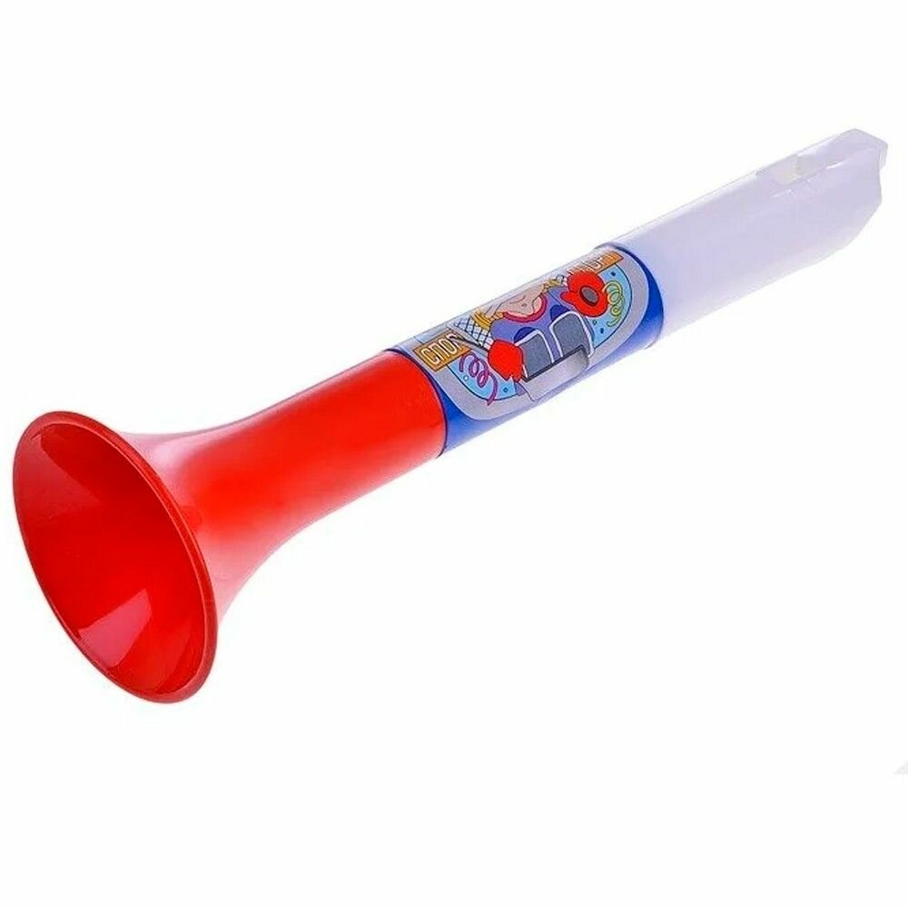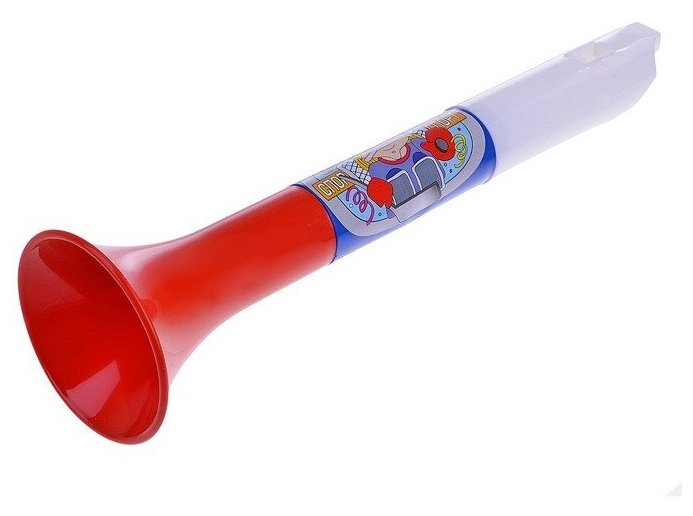 Пластиковая дудка разборная, состоит из трех частей — мундштука, основной части и раструба. Расцветка «триколор» как нельзя кстати подойдет для спортивных мероприятий — игр, соревнований и чемпионатов! Ее можно использовать для поднятия боевого духа любимой команде или вместо свистка. Для извлечения звука необходимо с силой подуть в мундштук. Дудка украшена наклейкой с рисунком. Музыкальный инструмент изготовлен из безопасного не токсичного пластика.
