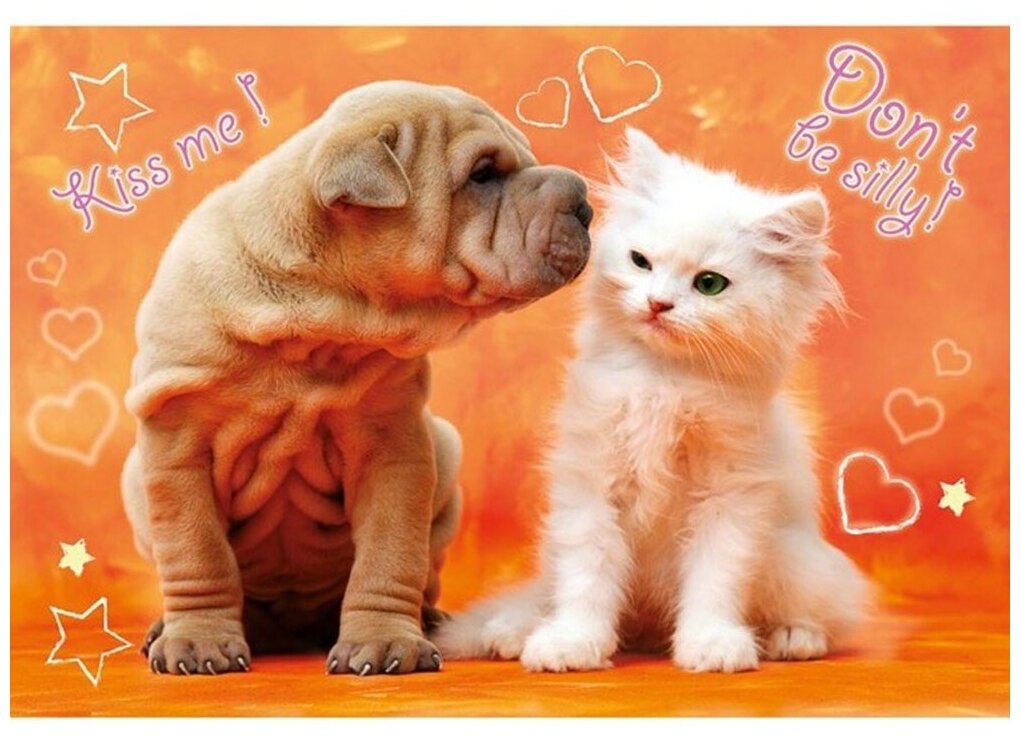 Какой ребенок не любит животных? Особенно, если эти животные такие милые! Спешите порадовать своего ребенка пазлом Сладкие и прекрасные, Поцелуй от известного бренда Trefl. С раннего детства детям надо прививать любовь к питомцам. На картинке изображен чудесный щенок, который сидит рядом с белым котенком, у которого добрые голубые глаза. Собачка тянется к котенку, что создает ощущение того, будто она вот вот его поцелует. Детали пазла приятны на ощупь и выполнены из высококачественного безопасного для детей материала. Собирая пазл, ребенок развивает свое творческое мышление, логику, и конечно же мелкую моторику рук.
