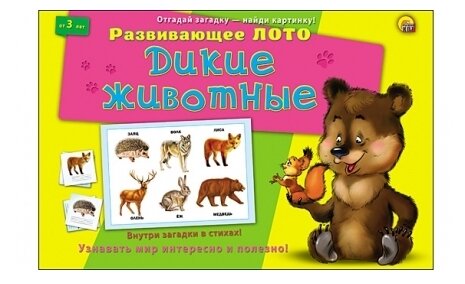Настольная игра Рыжий кот Лото с загадками Дикие Животные (ИН-8144)
