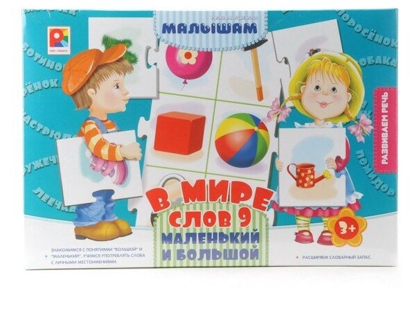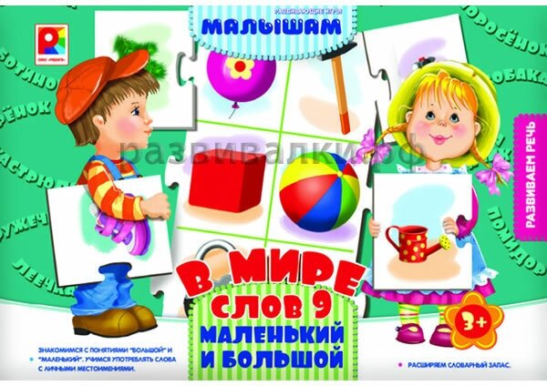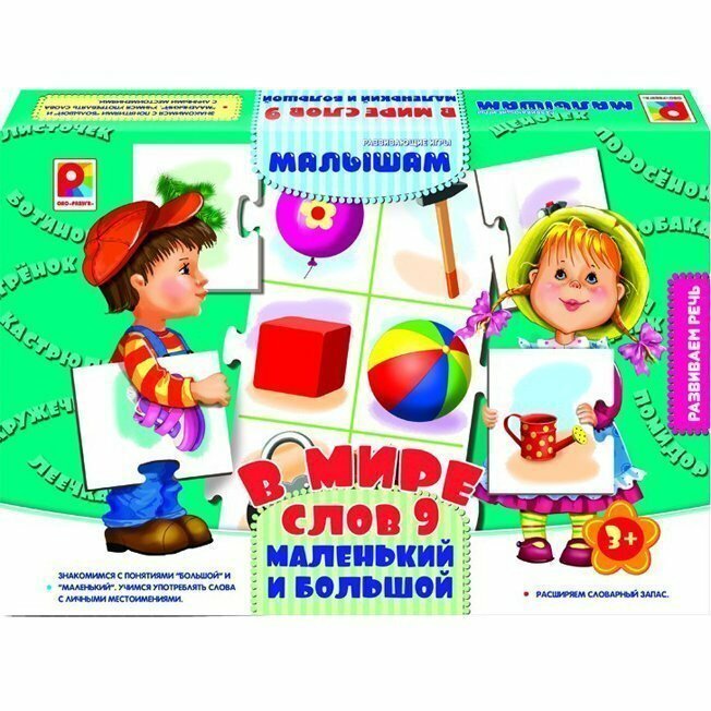 Игра В мире слов 9. Маленький и большой познакомит малышей с понятиями маленький и большой, поможет развить речь, расширить словарный запас и научит употреблять слова с личными местоимениями. Игра предназначена для малышей от 3 лет. Играть могут от 1 до 4 человек. Длительность игры - 10-20 мин.