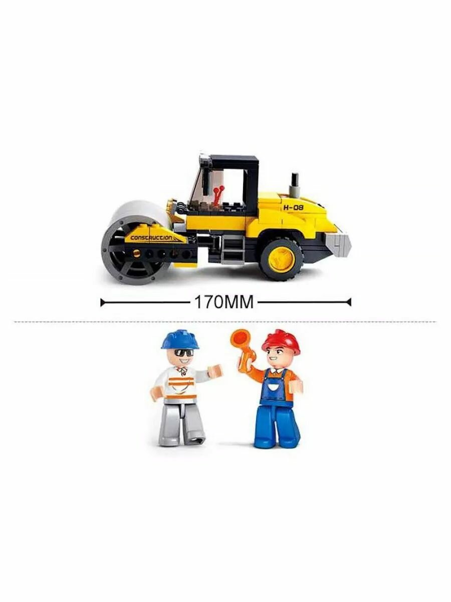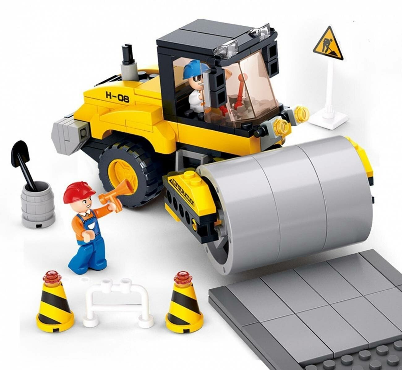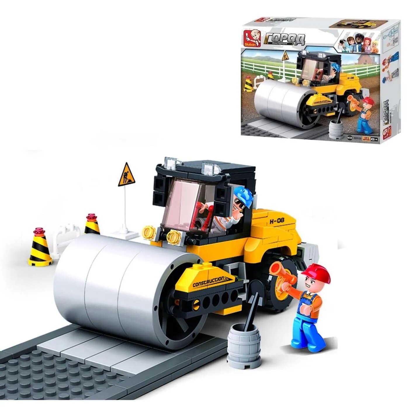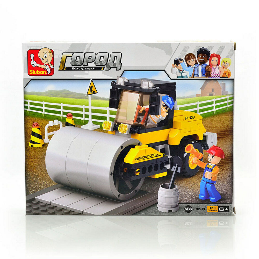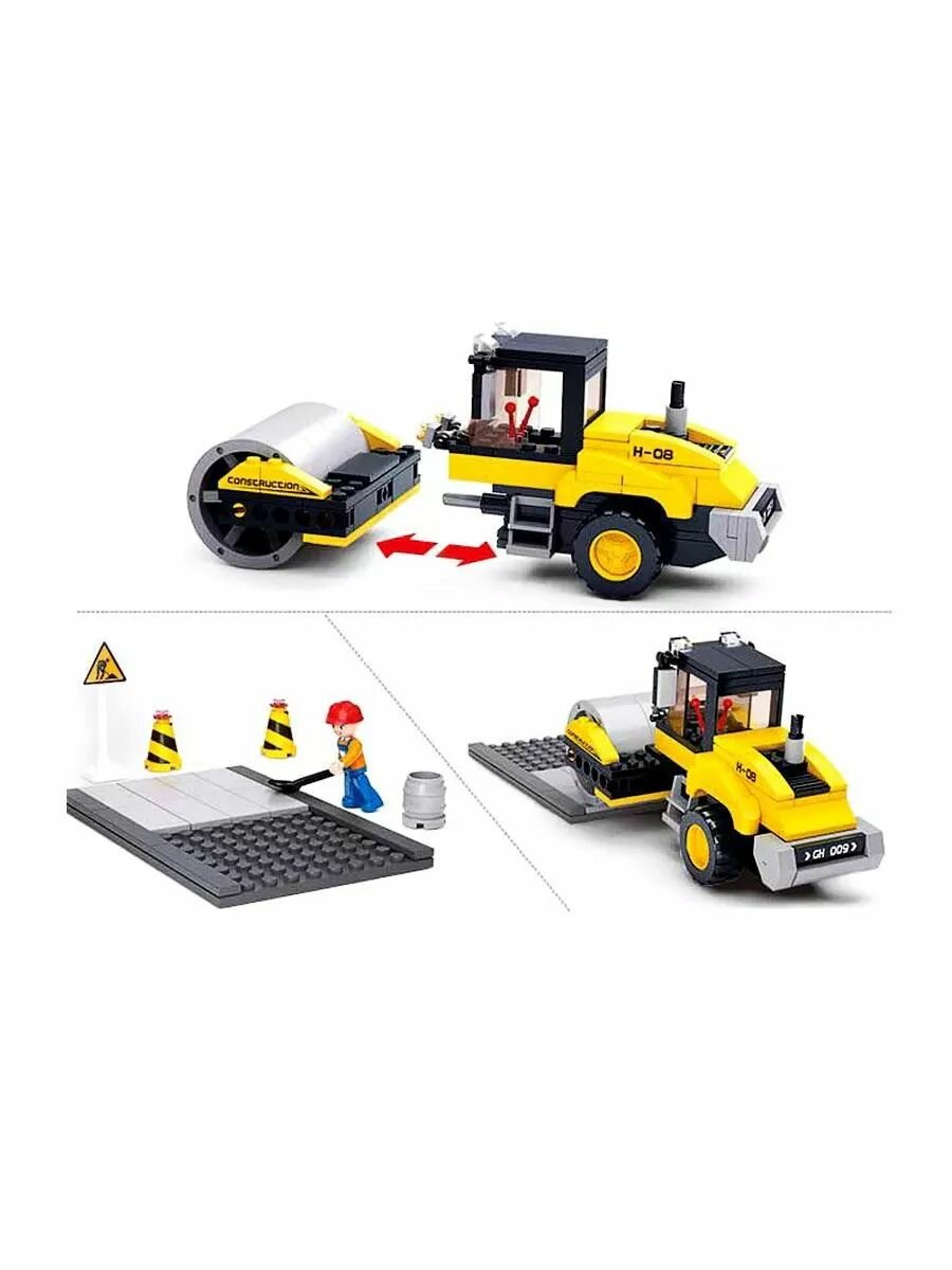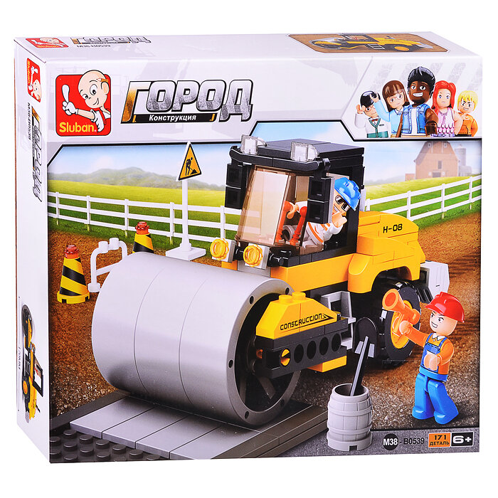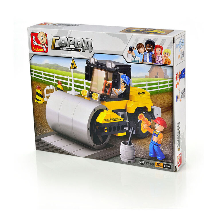 "Каток,который проложит дорогу к любому уголку Вашего игрового мира Слубан. Двое рабочих помогут сделать это еще быстрее.Детский конструктор Sluban и серия Строительная техника дополнят Вашу коллекцию не только из персонажей развивающего конструктора,но и поможет обрести большие навыки и умения в строительном деле.