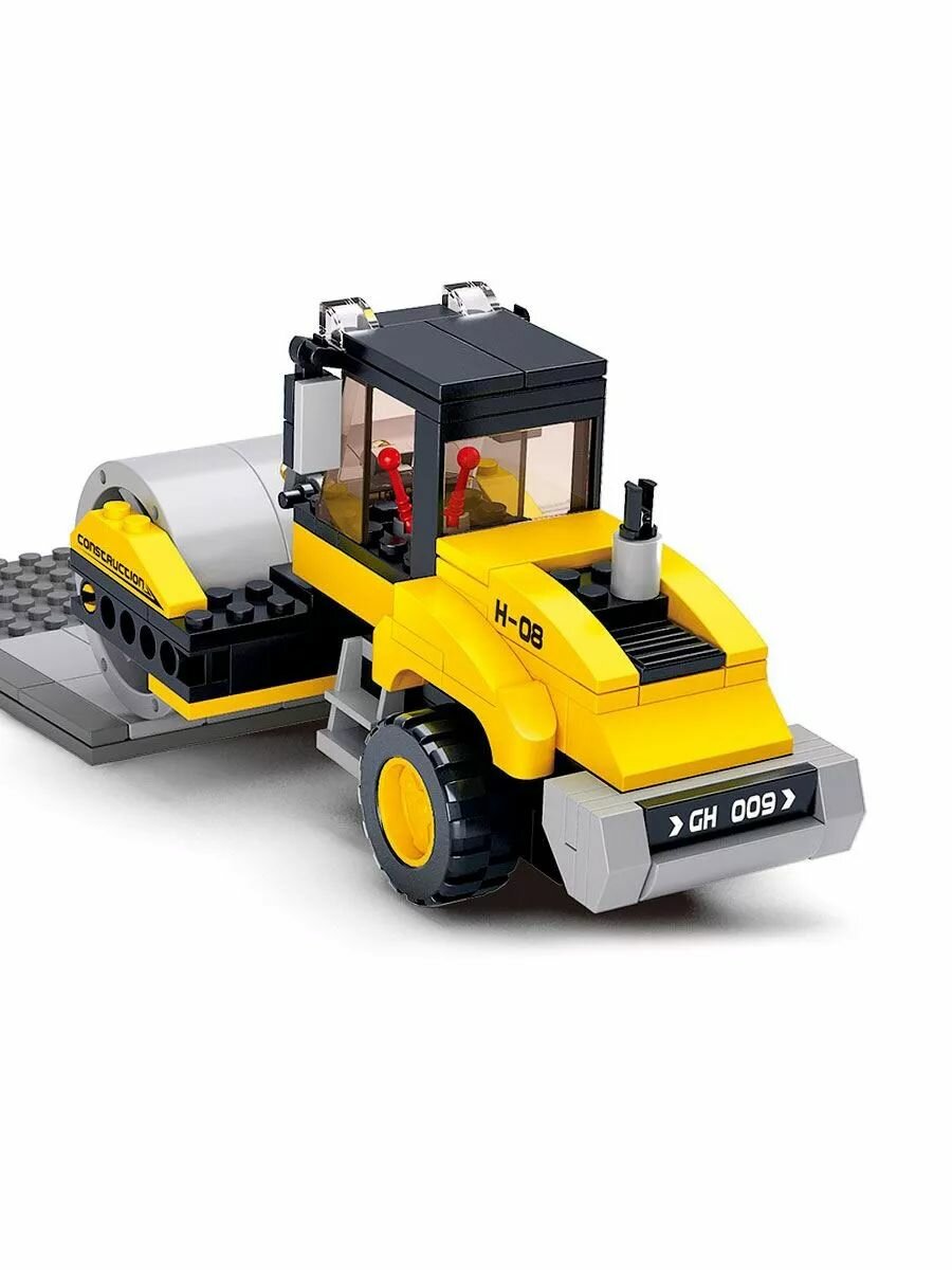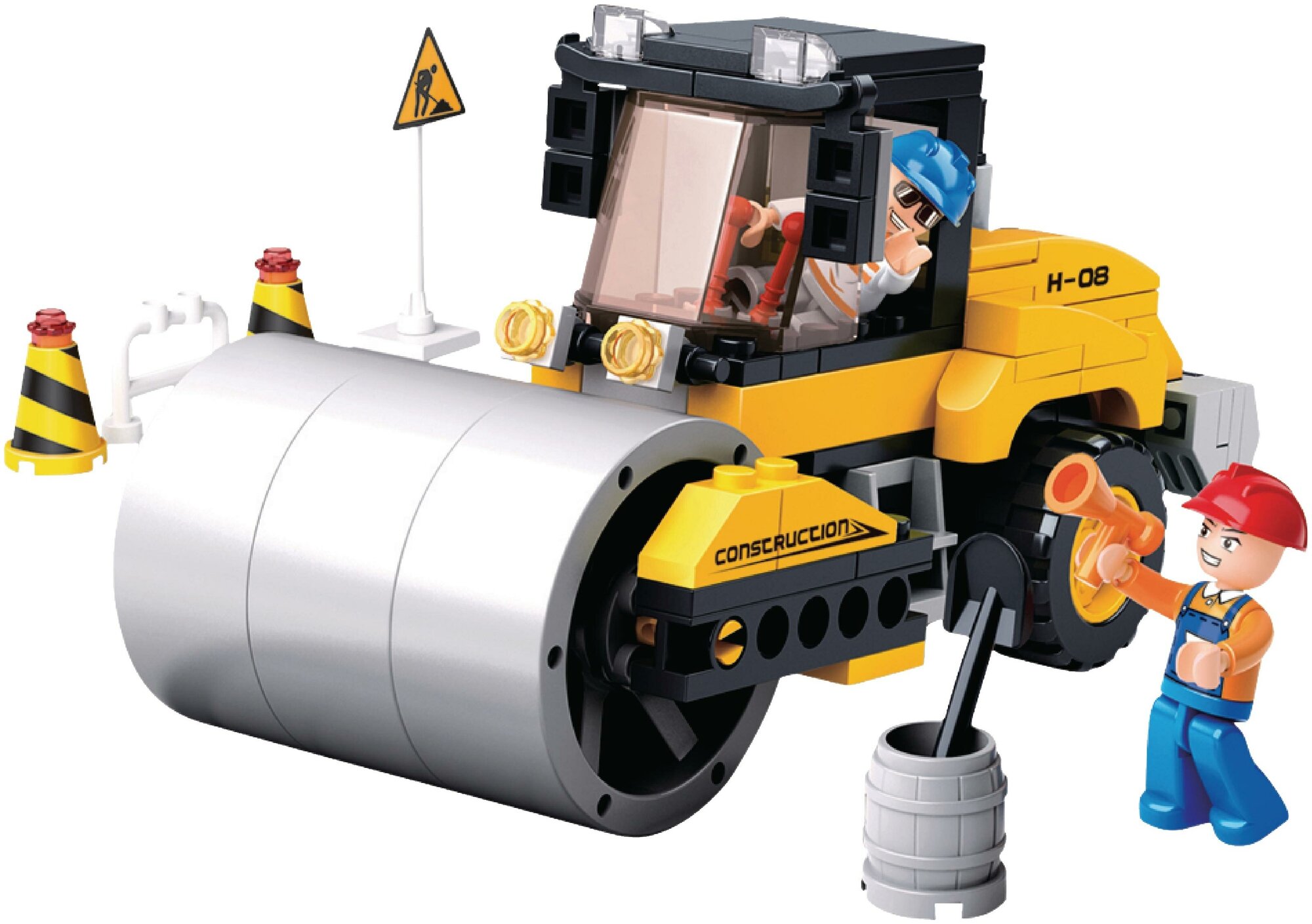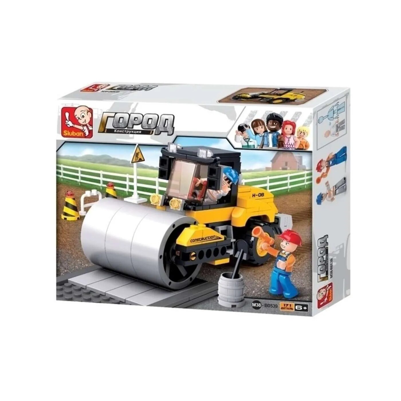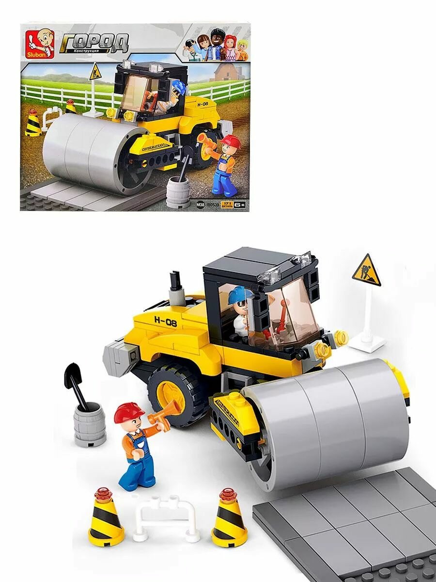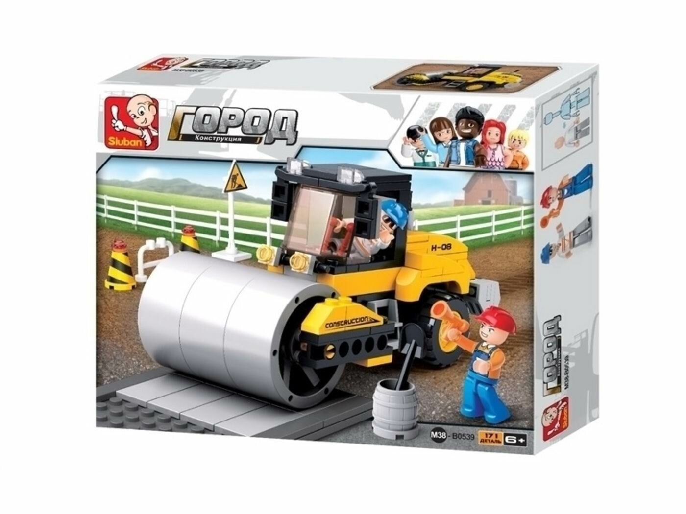 "Каток,который проложит дорогу к любому уголку Вашего игрового мира Слубан. Двое рабочих помогут сделать это еще быстрее.Детский конструктор Sluban и серия Строительная техника дополнят Вашу коллекцию не только из персонажей развивающего конструктора,но и поможет обрести большие навыки и умения в строительном деле.