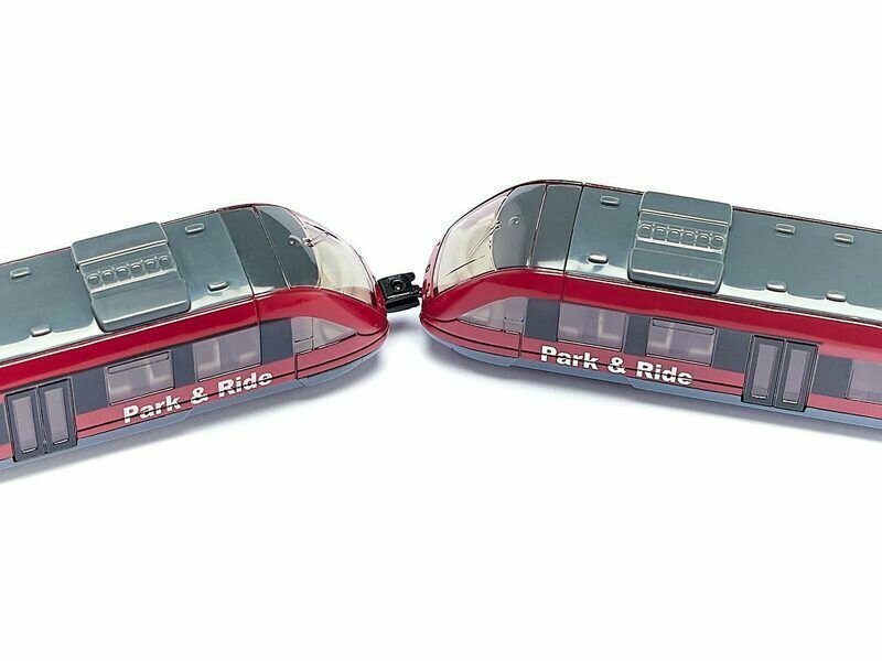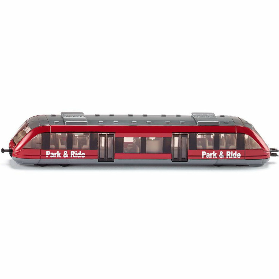 Игровая модель Пригородный поезд от Silu – это симпатичная красная электричка, изготовленная из металла с элементами пластика. Она может понравиться ребенку, который любит играть с разнообразными машинками, или коллекционеру – если он собирает подобные модели. Этот детский поезд – очень простая, но детально проработанная игрушка. У электрички не открываются двери, но все стекла – прозрачные. Ребенок сможет долго разглядывать салон небольшого поезда и кабины машинистов. У поезда есть колеса, поэтому его можно катать и придумывать интересные игры. При наличии нескольких подобных поездов от Siku, их можно сцепить и превратить в длинный состав – на электричке присутствуют специальные пластиковые крепления.