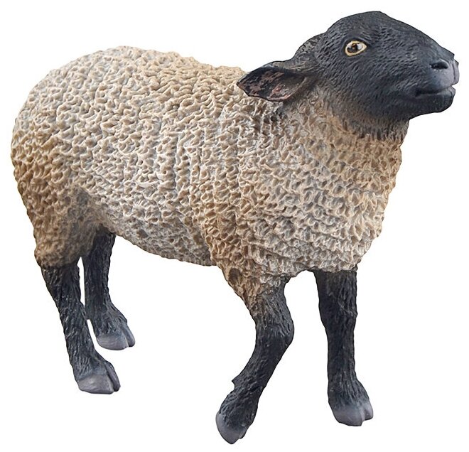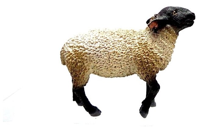 Порода суффолк считается одной из лучших мясных пород овец. Она появилась в Англии в результате скрещивания баранов породы саутдаун и овец породы норфолк рогатый. От первых суффолки унаследовали хорошее мясо и густую шерсть, а от вторых - выносливость и мускулистость. Эта порода комолая - иными словами, у суффолкских баранов, в отличие от их норфолкских предков, не растут рога. Фигурка отлита из прочного пластика и раскрашена вручную. При ее изготовлении соблюдено пристальное внимание к деталям, сохранены реальные пропорции и анатомия животного, выдержана натуральная цветовая гамма.