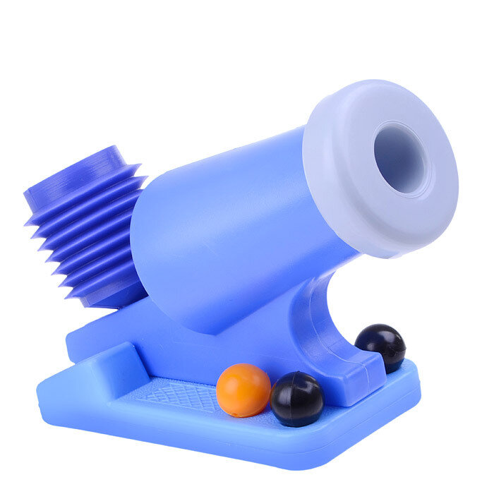 Эта забавная игрушечная пушка, сделанная из пластика и раскрашенная в пестрые цвета, имеет механический принцип работы. В отверстие ствола вкатывается круглый снаряд, после чего необходимо с силой ударить по маленькому воздушному поршню с другой стороны, чтобы поток воздуха с силой вытолкнул шарик. Выстрелами из пушки можно сбивать солдатиков и небольшие постройки из конструктора, таким образом она прекрасно впишется в любую игру с боевыми сценами. Помогает развитию воображения, игровой деятельности, общему физическому развитию.