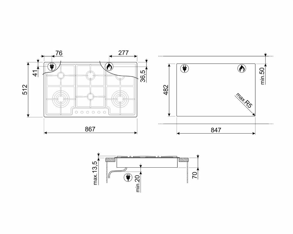 Газовая варочная поверхность SMEG выполнена из нержавеющей стали. Это очень прочный металл, который стоек к коррозии. Ещё один его плюс в том, что он легко отмывается даже без применения специальных средств. Отдельного внимания заслуживает функция газ-контроля. Она предотвратит утечку газа и остановит его подачу при малейшем подозрении на неисправность. Благодаря удобной функции автоматического электроподжига вам не потребуется прикладывать особых усилий для включения горелки.