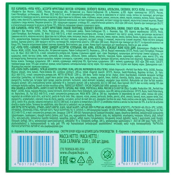 Вам знакомо то чувство, когда невыносимо хочется чего-нибудь сладенького? В этом нет ничего страшного, баловать себя полезно, ведь сладкое повышает ваш уровень эндорфинов — гормонов счастья. Карамель Чупа Чупс, фруктовая, ассорти с соком + кола, не только содержит натуральные и вкусные ингредиенты, но и несёт заряд хорошего настроения. Позвольте себе полакомиться от души и разделите это удовольствие с близкими.