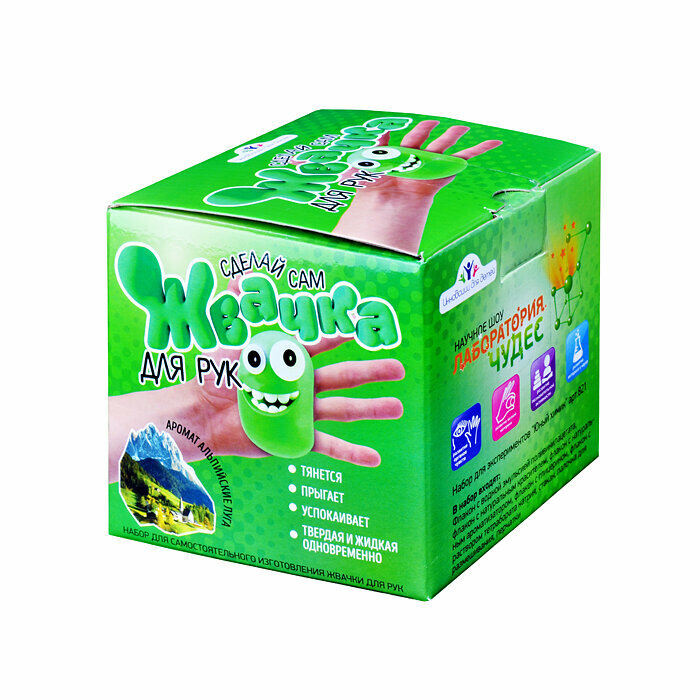 Благодаря данному набору дети смогут провести в домашних условиях опыт, наглядно демонстрирующий химические свойства некоторых веществ, соединяя которые дети смогут наблюдать химическую реакцию, в результате которой образуется эластичная масса – жвачка для рук. Со жвачкой для рук интересно играть, исследуя и применяя её свойства для создания различных фигурок. Особенности: - Набор содержит всё необходимое для увлекательного творческого процесса - приготовления жвачки для рук с ароматом «Альпийские луга».