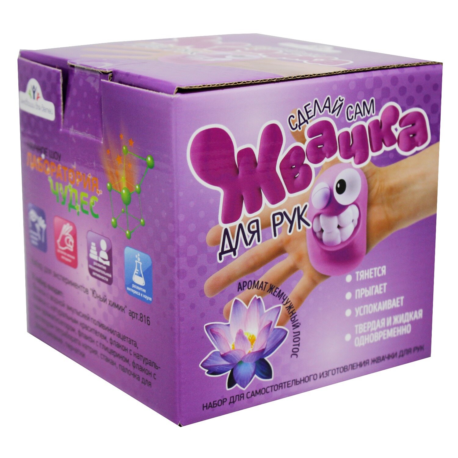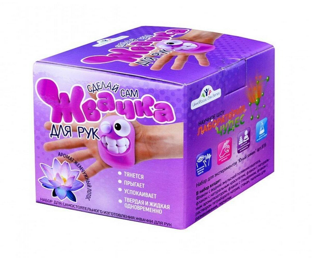 Набор для экспериментов «Жвачка для рук» от компании «Висма» содержит необходимые компоненты, соединив которые дети в домашних условиях смогут создать эластичную массу – жвачку для рук. Используя жвачку детям можно наглядно продемонстрировать некоторые физические свойства веществ, ведь она может иметь твёрдое и жидкое состояние. Особенности: - Набор содержит всё необходимое для увлекательного творческого процесса - приготовления жвачки для рук с ароматом «Жемчужный лотос».