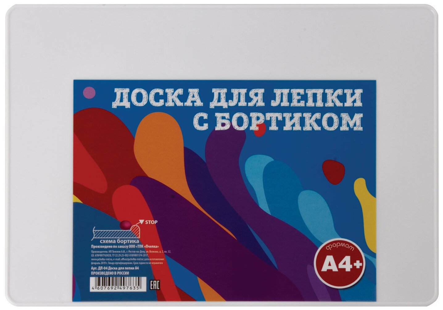 Доска для работы с пластилином Пчелка А4 бел с бортиком (222899)