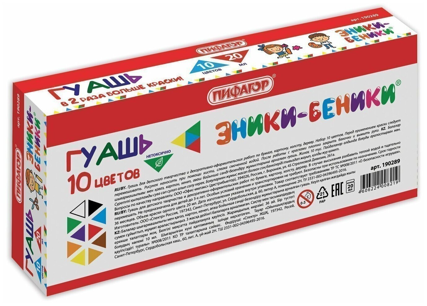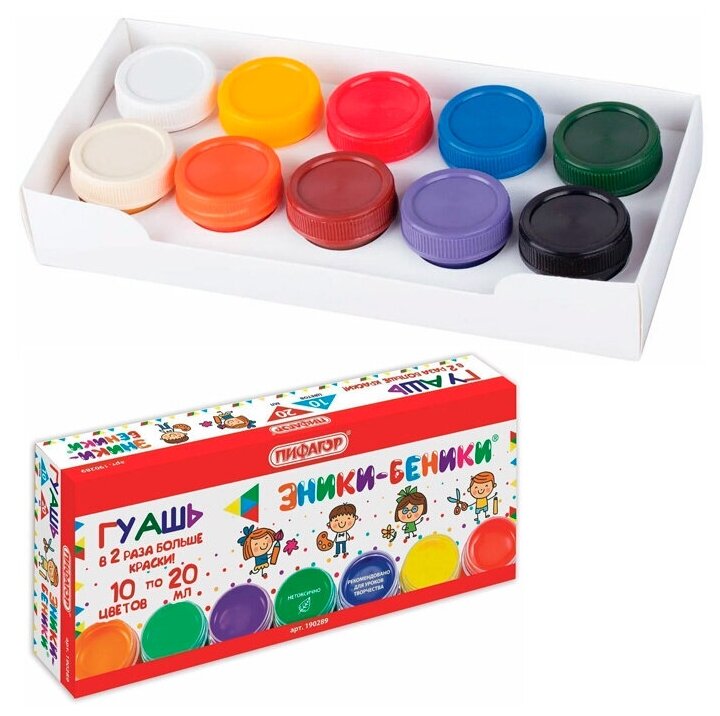 Гуашь 10 цветов по 20 мл поможет вашему ребёнку создавать красивые яркие картинки, выдумывать невероятные сюжеты и воплощать их в реальность, развивая цветовое восприятие, зрительную память, воображение, мелкую моторику пальцев, ассоциативное, аналитическое и творческое мышление.