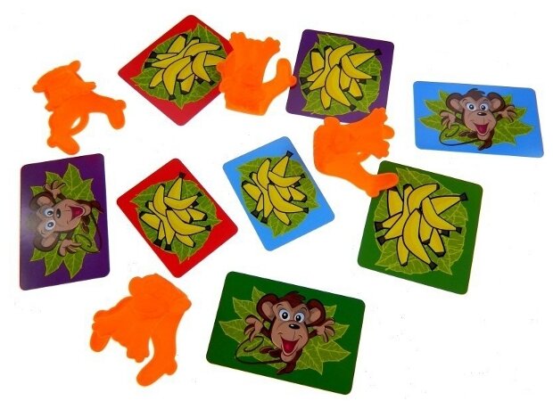 | Состав набора | 8 обезьянок, 12 карточек с бананами, 4 игральные карты и правила игры на русском языке |