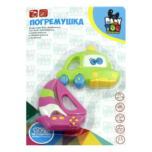Набор погремушек "Автомобиль и кораблик" от производителя Baby You понравится многим детям. Забавные игрушки-погремушки не дадут ребенку скучать. Набор представляет собой две симпатичные игрушки - машинку и кораблик. Яркая цветовая гамма игрушек и веселый необычный дизайн обязательно привлекут внимание ребенка.