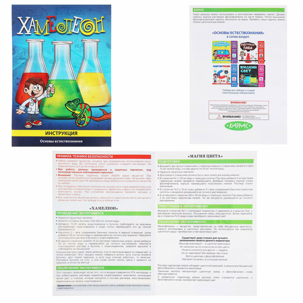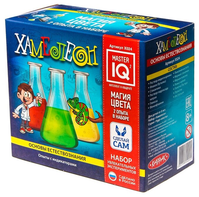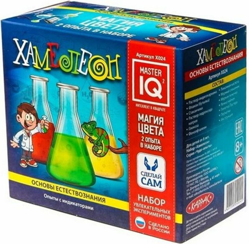 Научно-познавательный набор экспериментов для детей IQ MASTER "Хамелеон" – миниатюрная лаборатория с самым настоящим оборудованием и химическими реактивами. Набор предлагает начинающему ученому провести 2 захватывающих опыта.