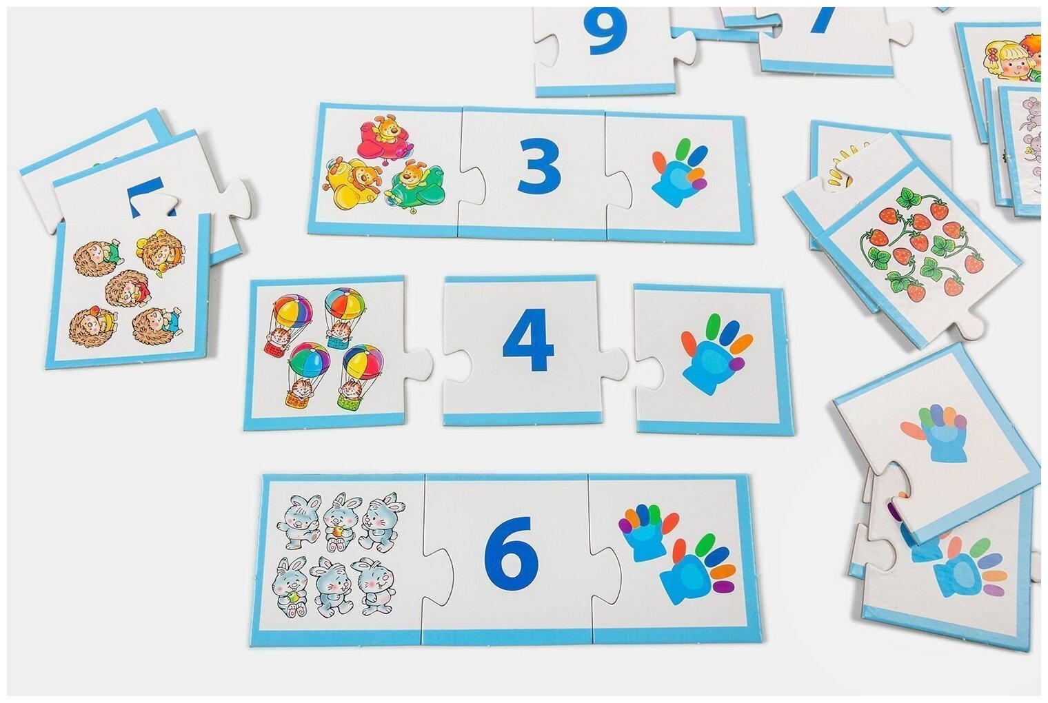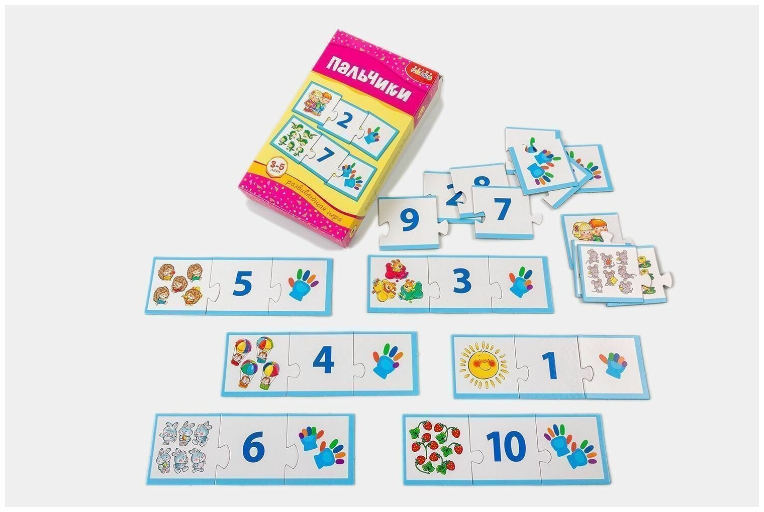 Развивающая игра Пальчики представляет собой набор красочных деталей с пазловыми замочками для обучения счету. Пусть маленький математик подбирает к рисункам подходящие цифры и собирает картинки! От 3 лет.