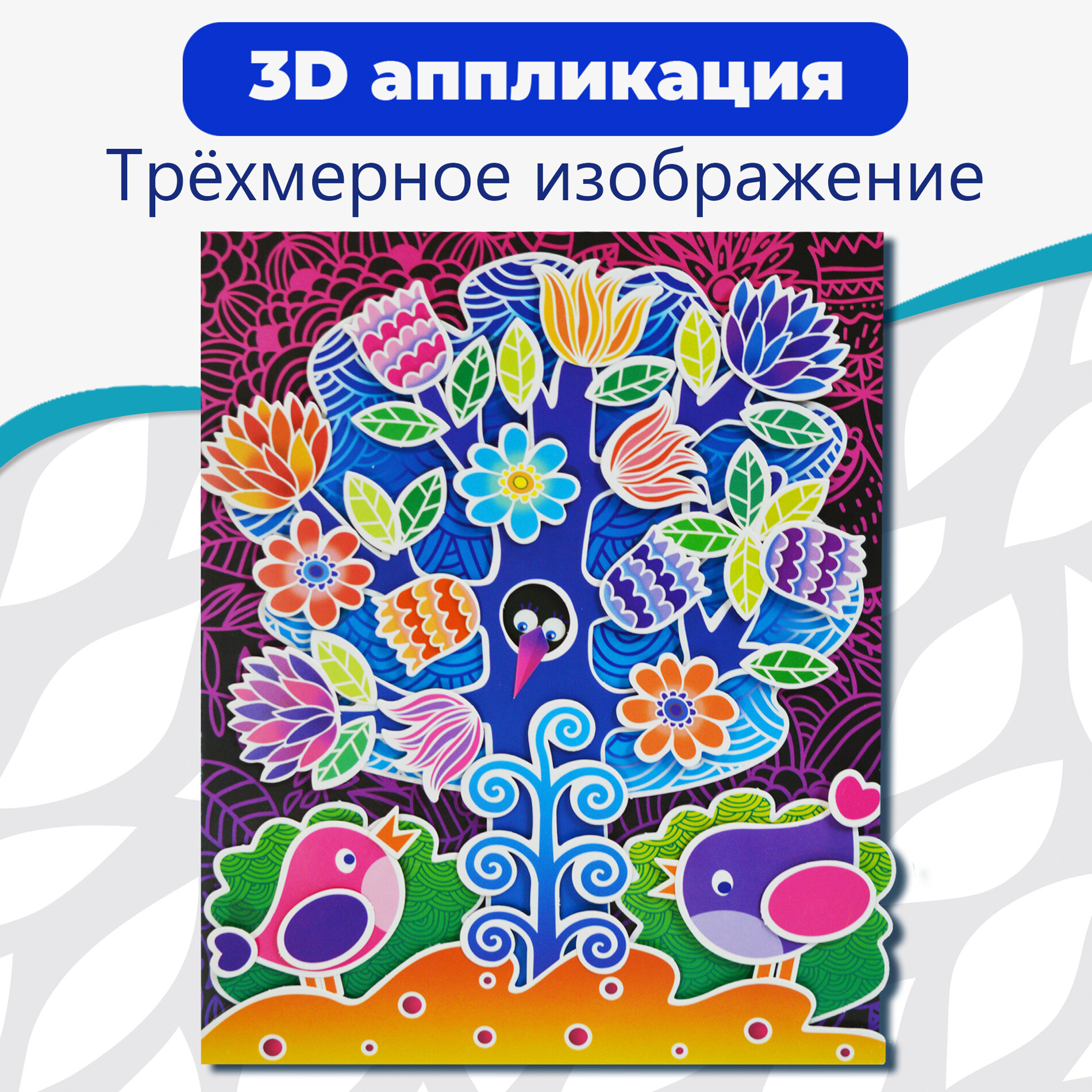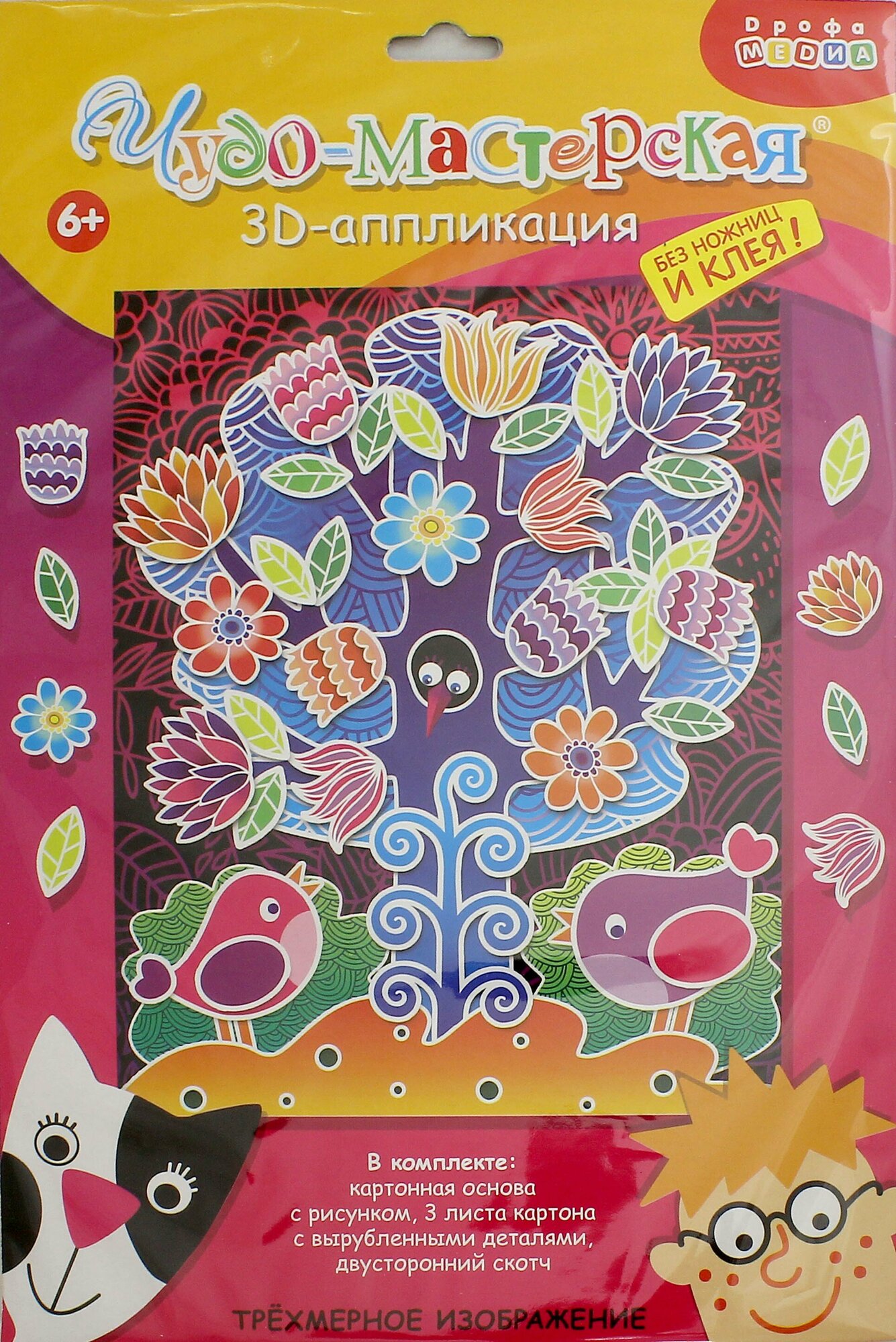 3D-аппликация Дрофа-Медиа "Чудо-дерево" представляет собой отличный вариант детского развивающего досуга. Аппликация выполняется из картона без помощи клея и ножниц. Простая картонная основа превратится в яркое дерево. Красочные детали изображения, выполненные из плотного картона, выступают над основой, создавая причудливый и сказочный мир. Этот удивительный 3D-эффект возникает благодаря использованию объемного двустороннего скотча.