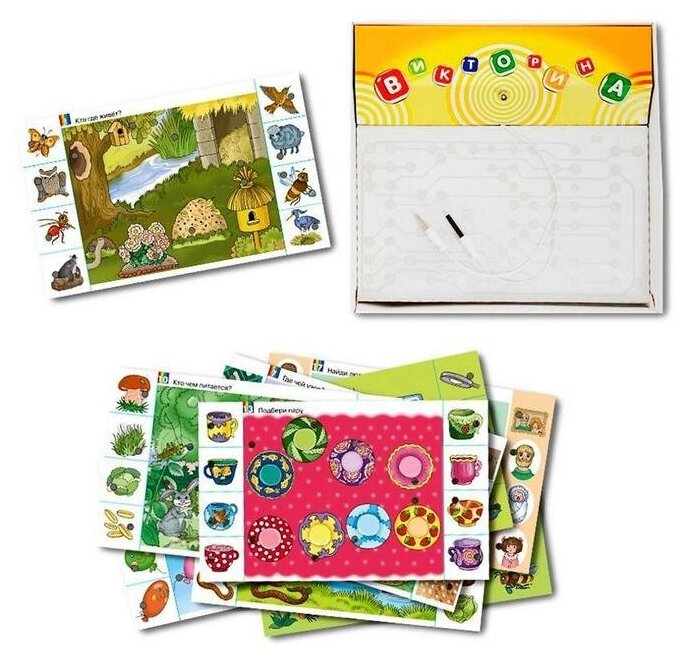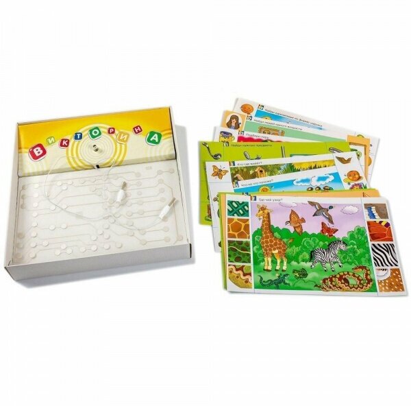 | Состав набора | карточки двусторонние - 10 шт., плата - 1 шт., светозвуковой модуль - 1 шт., батарейки - 2 шт., правила с ответами - 1 шт. |