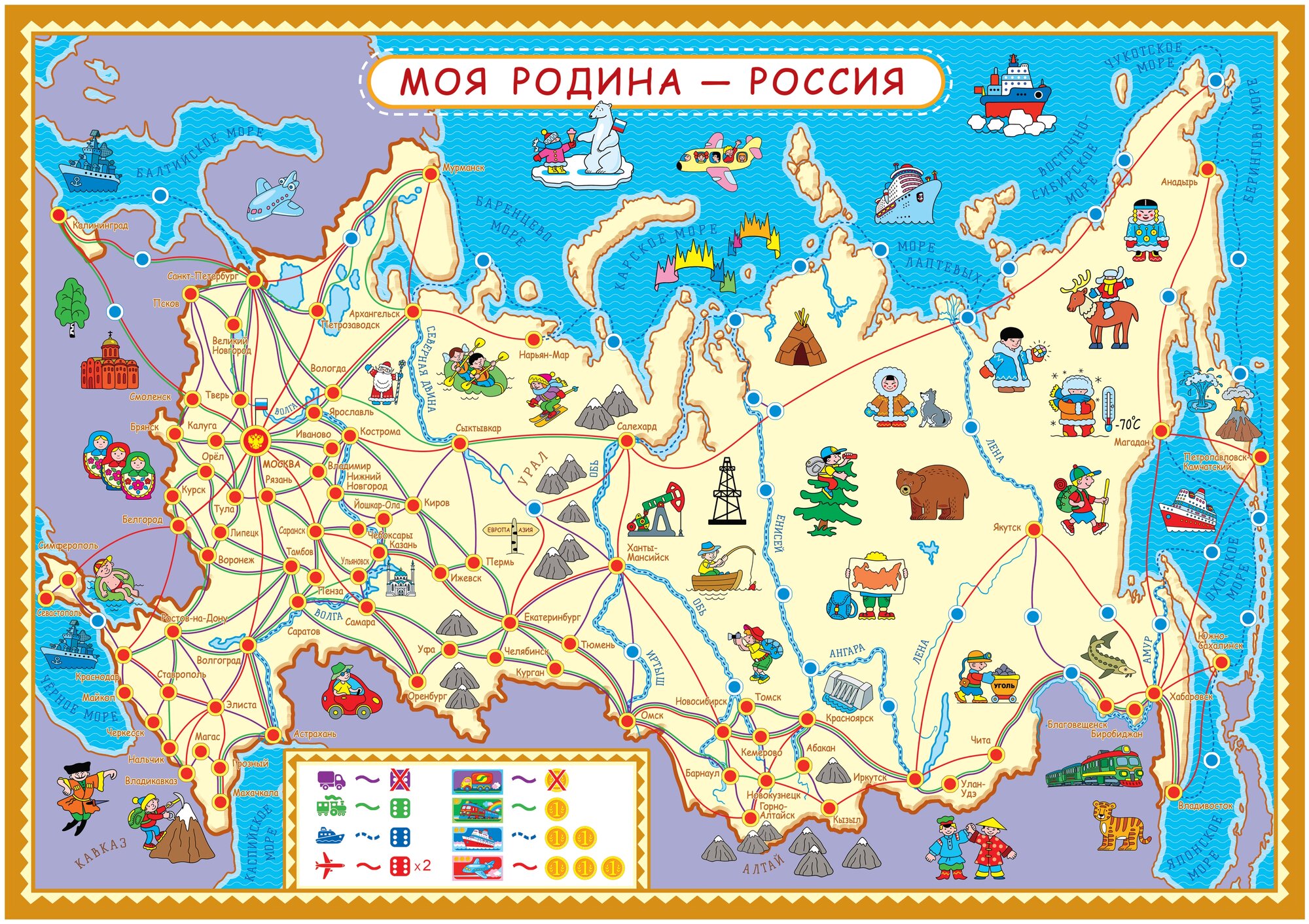 Дорогие друзья! Хорошо ли вы знаете нашу Родину? Проверить это поможет увлекательное путешествие по карте России, во время которого игрокам предстоит отвечать на вопросы разной тематики. Множество неожиданных открытий ждут как детей, так и их родителей. Вам предстоит совершить увлекательное путешествие по просторам России. Вы побываете во многих городах, узнаете много нового об истории и географии нашей Родины, её культуре и достопримечательностях, о знаменитых соотечественниках, учёных и спортсменах, о многочисленных народах России. Цель игры - первым посетить несколько городов нашей страны, отвечая на вопросы викторины. Чем лучше игроки отвечают на вопросы, тем больше у них шансов на победу! Игра содержит более 600 вопросов и занимательных фактов о России. Количество игроков 2 - 6. А знаете ли вы… …что в русской печи не только готовили еду, но и мылись? …зачем нашим предкам был нужен рубель и валёк? …кто изобрёл лампочку, радио, телеграф, лазер, трамвай и телевидение? …сколько часовых поясов в России? …как называют жителей Архангельска?