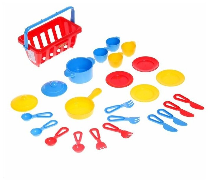 Набор детской посуды Полесье Top Chef с корзинкой на 4 персоны синий Набор детской посуды TOP chef с корзинкой № 2