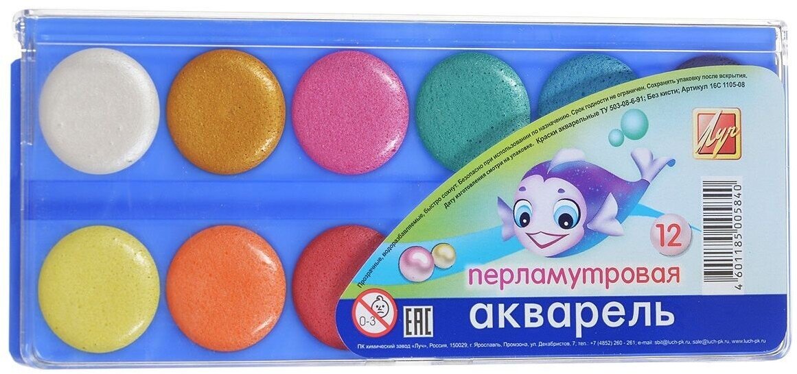 Краски акварельные Луч перламутровая 12 цв. б/к (16С1105-08)