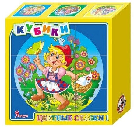 Собрать шесть красочных картинок по мотивам детских сказок - Белоснежка и семь гномов, Чипполино, Красная шапочка, Буратино а также Винни-пух из девяти кубиков вполне по силам любому ребенку в возрасте от трех лет. Особенно, если он ранее уже собирал картинки из 4 или 6 кубиков.В результате игровой деятельности малыш прекрасно развивает внимание, память, речь, воображение, расширяет кругозор и словарный запас.Картинки в наборе пластмассовых кубиков «Цветные сказки-4» выполнены по технологии прямой печати (без обклейки), поэтому изображения на кубиках более долговечные, меньше подвержены абразивному износу и еще долго будут радовать малыша сочными и яркими красками.