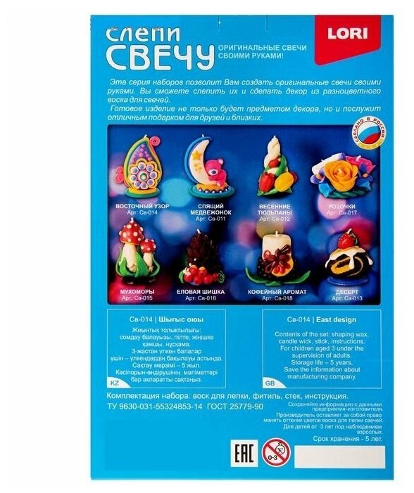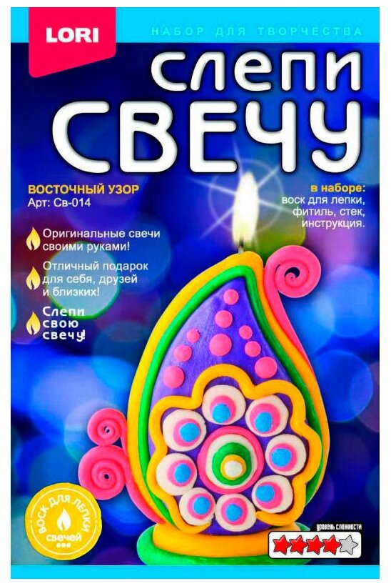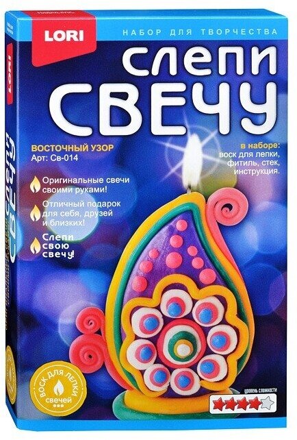 С набором для творчества Восточный узор из серии Слепи свечу ребенок сможет сделать оригинальные свечи своими руками. В наборе имеются все необходимые предметы для успешной работы: воск для лепки свечей, фитиль, а также стек. Чтобы ребенок не запутался в процессе работы, в наборе имеется инструкция, обязательная к прочтению. Такой набор сможет неплохо развить у ребенка творческие способности.