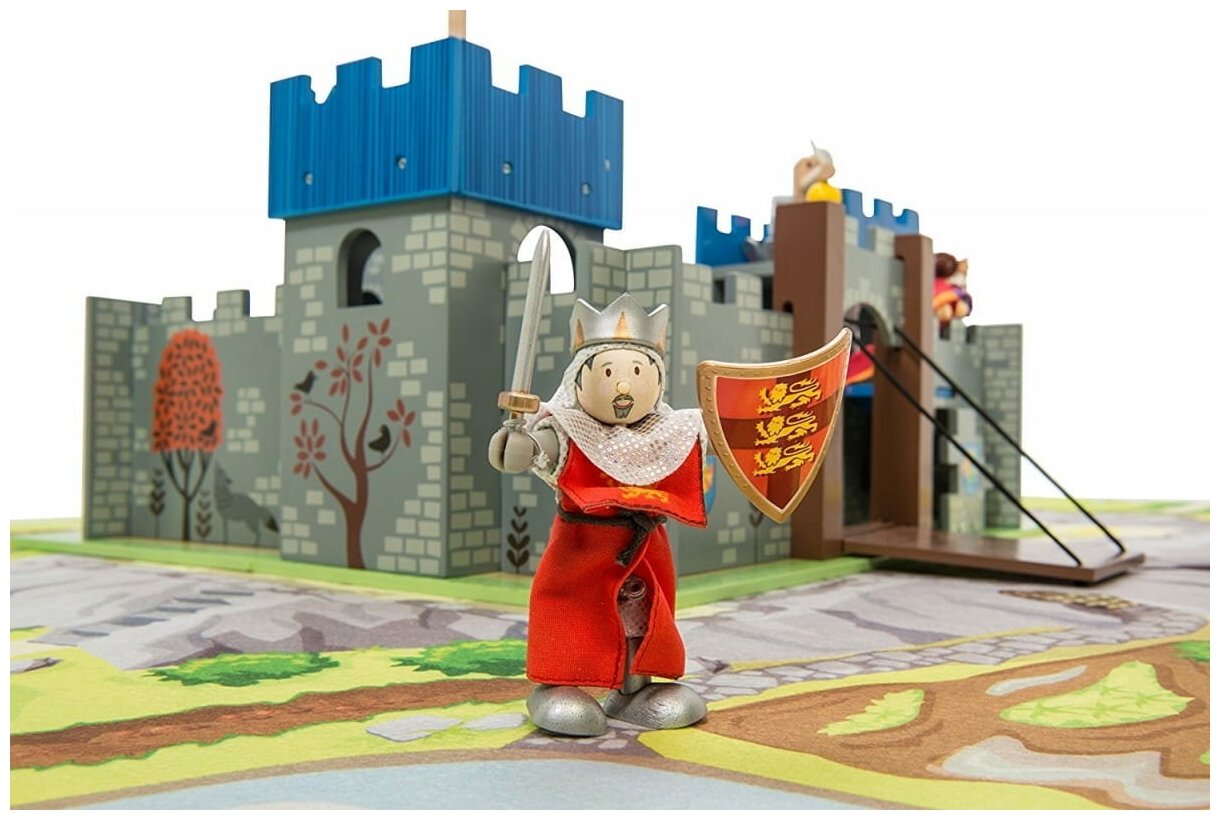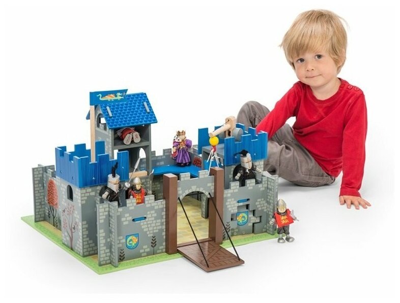 Яркий, интересный и красивый рыцарский замок Меч короля Артура - будет очень хорошим подарком для любого мальчишки. С его помощью рыцари, волшебники, драконы и другие сказочные персонажи легко обживут эту волшебную страну. А в перерывах между играми все герои сражений смогут мирно отдыхать за высокими и неприступными стенами. Выполненный из дерева игровой набор очень интересен и увлекателен, так как состоит из множества аксессуаров для разнообразных игр. У замка три синие башни: тюремная башня, флаговая башня с флагом, башня с лебедкой. Внутреннее пространство замка имеет галереи на стенах. Ворота открываются, образуя перекидной мост, на них изображен рыцарский герб. Так же два герба изображены с двух сторон от входа. Рядом с мостом есть потайная дверца для побега. Стены замка разукрашены под камень, внутренний двор так же замощен камнем, а вокруг растет трава. Замок легко собирается. Набор упакован в красивую подарочную коробку. Яркие цвета, высококачественная обработка деталей, глянцевая поверхность игрушек, высокие стандарты безопасности и качества. Прекрасно сочетается с деревянными куклами Le Toy Van. Продаются отдельно.