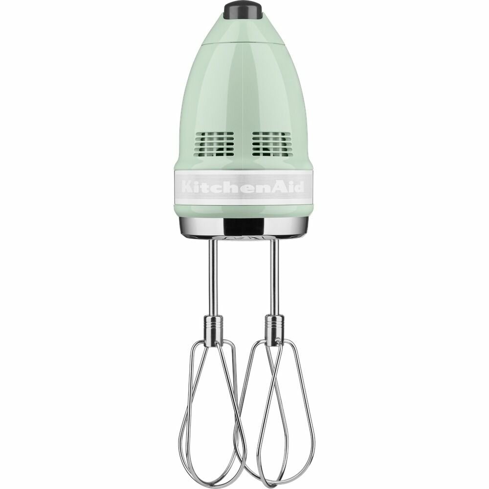 KitchenAid 9-Speed Hand Mixer представляет собой мощный, многофункциональный и компактный миксер с ручным управлением. Светодиодный индикатор отображает скорость, выбранную из 9 различных режимов. Плавное начало работы с постепенным ускорением избавит вас от брызг. Миксер комфортно держать в руке благодаря специальной прорезиненной рукоятке, а шнур никогда не запутается, благодаря поворотному механизму.