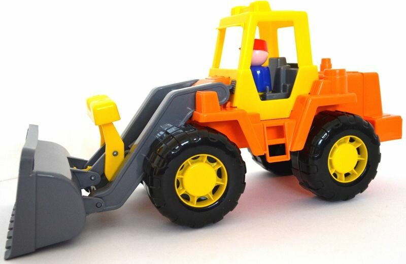 Такая спецмашина понравится любому мальчишке, который сможет играть с ней как на улице, так и в доме. Трактор имеет большие колёса, вместительную кабину без стёкол, а также поднимающийся и опускающийся ковш, способный копать или перевозить камни и песок. Трактор выполнен из нетоксичного пластика, который не вызовет аллергии, а значит, полностью безопасен для детского здоровья. Играя, ребёнок разовьёт мышление, речь, мелкую моторику пальцев, координацию движения рук, а также внимательность, фантазию и воображение.