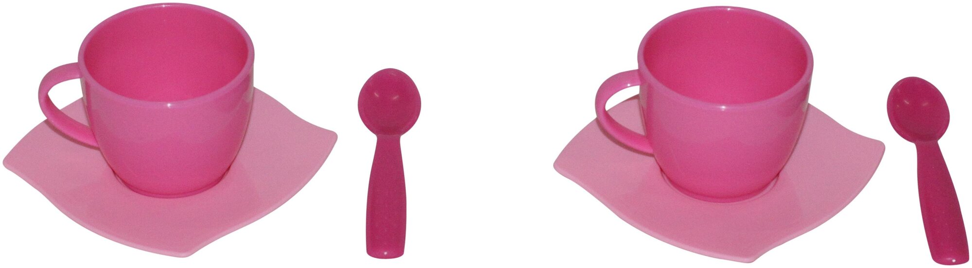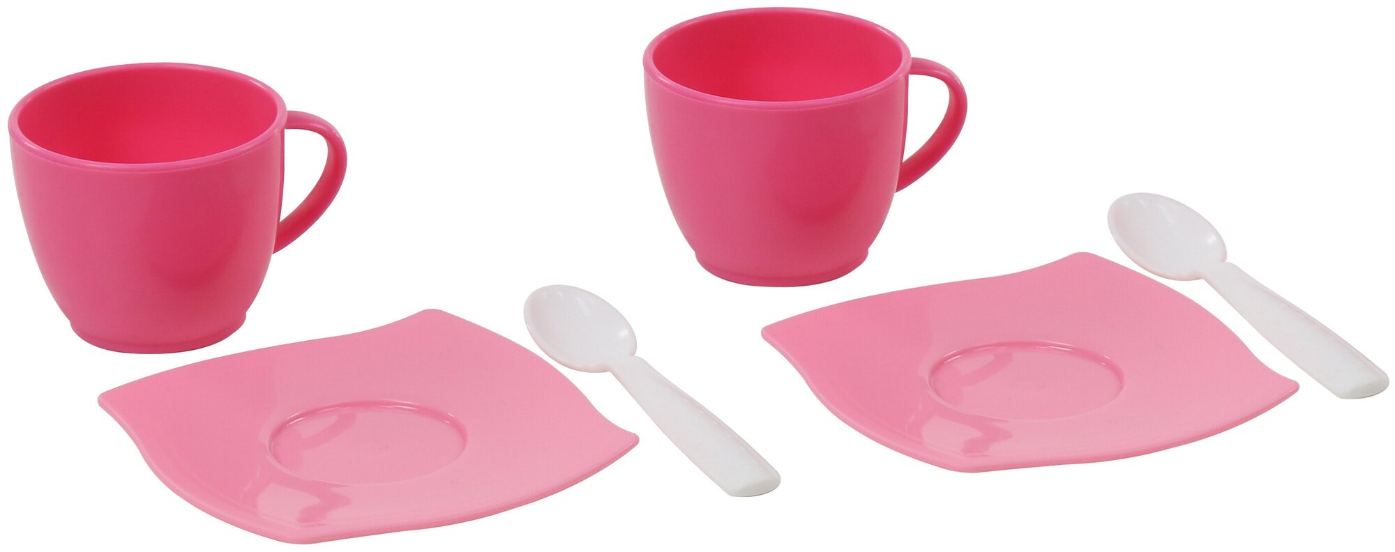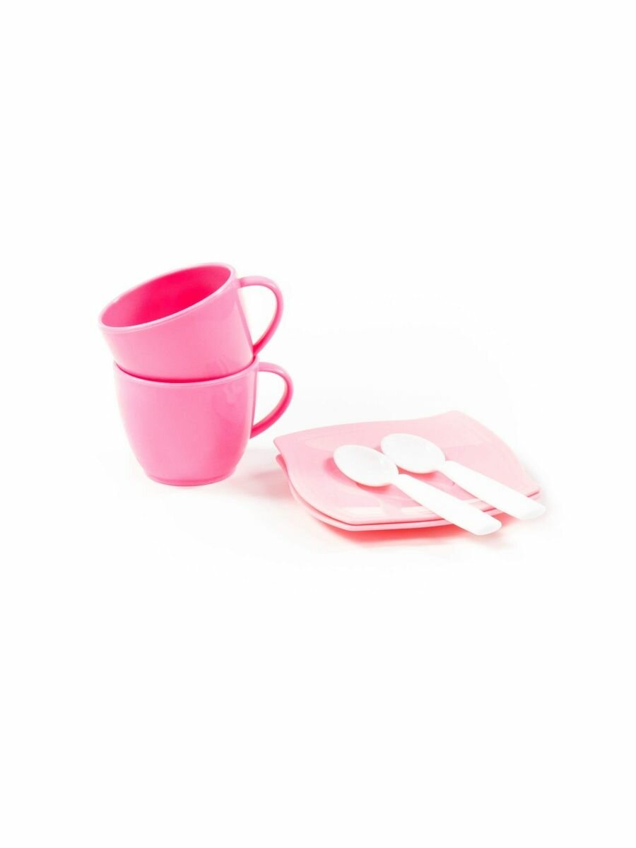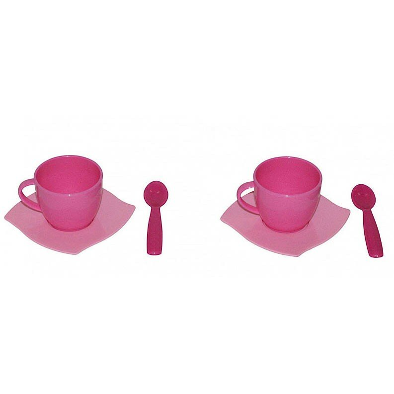Набор игрушечной посуды розового цвета. Состоит из двух тарелок, двух чашек и двух ложек. Изготовлен из прочного и безопасного для детей пластика. Позволит ребенку весело провести время и устроить настоящее чаепитие.
