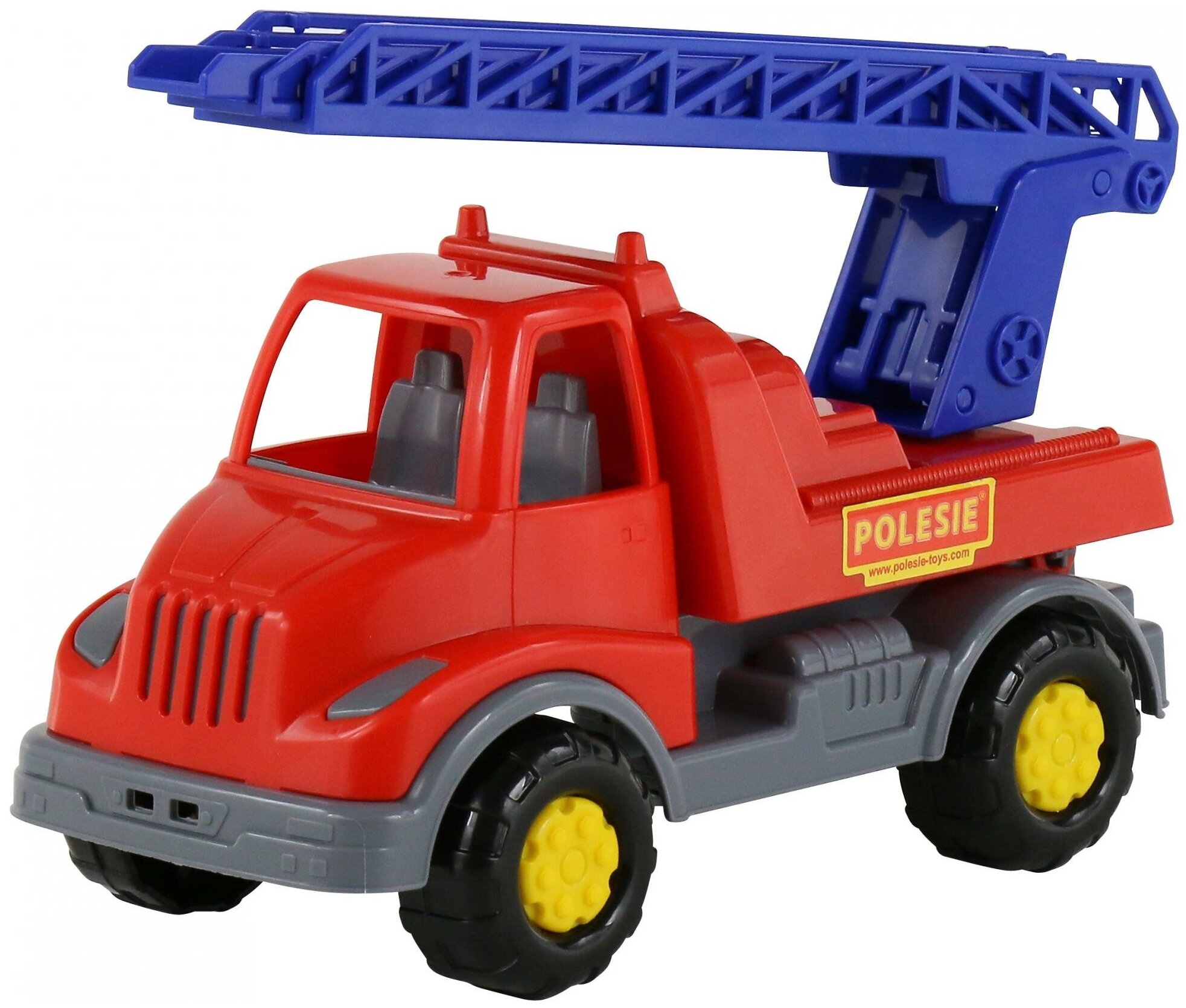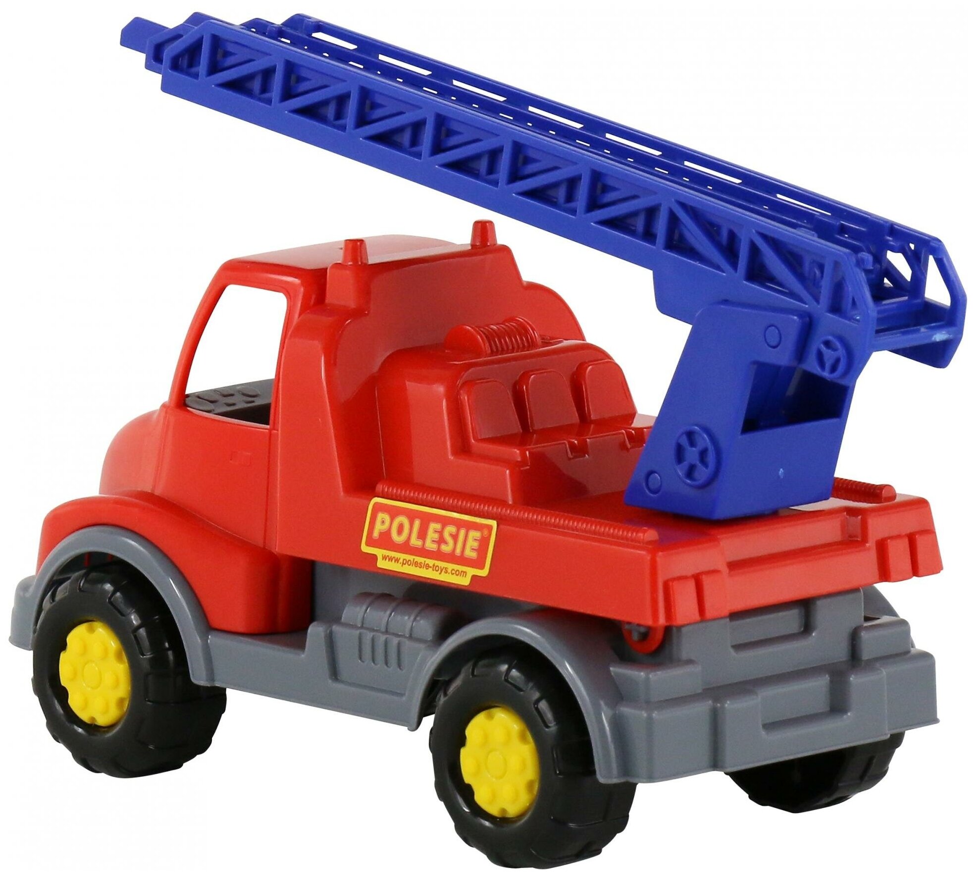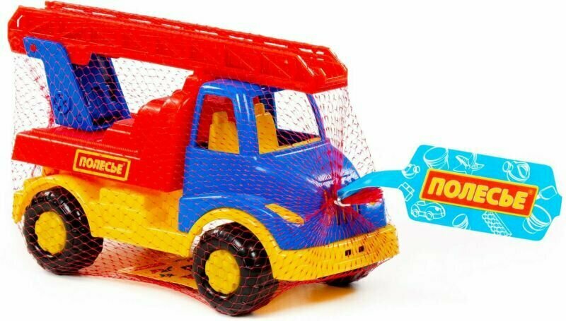 Машинка Леон непременно понравится любому мальчику. Она выполнена в виде пожарной машины и окрашена в красный, желтый и синий цвета. Сзади у нее есть лестница, которую при необходимости можно поднять, а вращающиеся колеса позволят катать ее по любым поверхностям. Играть с машинкой можно как дома, так и на улице - работа для пожарной службы найдется везде!