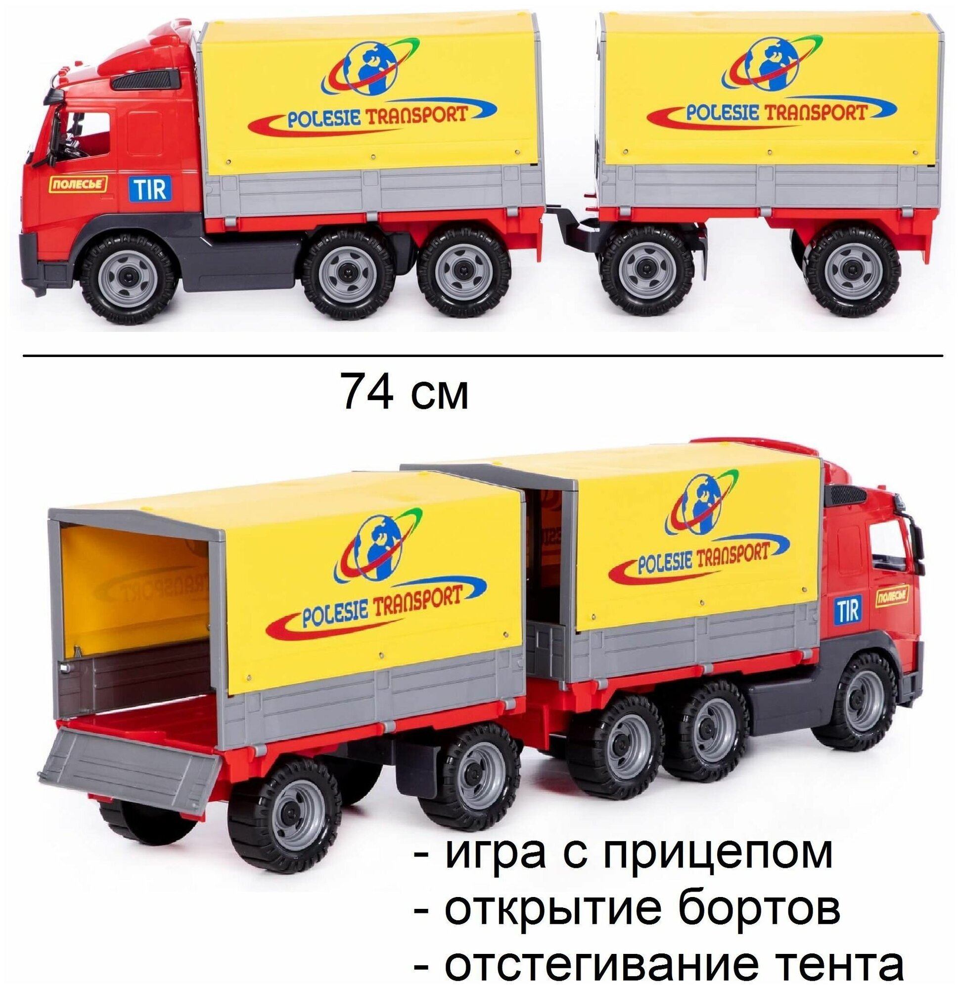 Автомобиль бортовой Полесье тентовый с прицепом 77.5 см (8732)