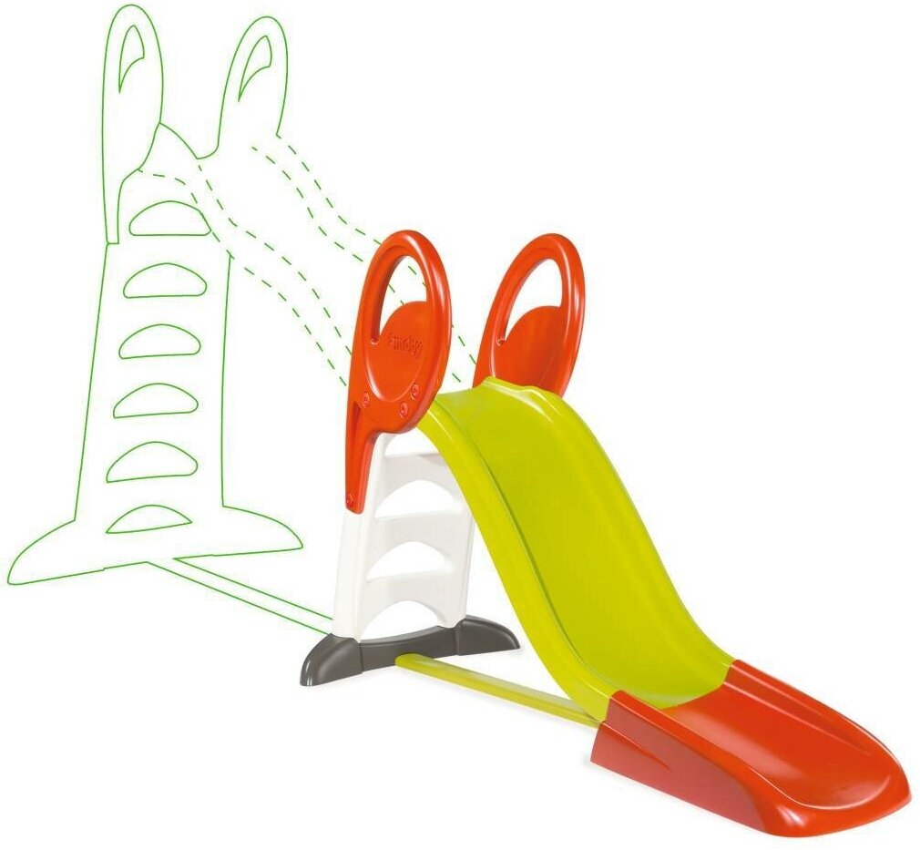 Горка Smoby Мега два в одном состоит из 2-х частей. Особенности: Первая часть - маленькая горка для детей от 2-х лет. Длина ската 150 см,а высота 100 см. Вторая часть большая горка со скатом 375 см и высотой 186 см. Горка выполнена из сверх прочного пластика. Максимальный вес ребенка до 50 кг. Пластик обработан антиультрафиолетом, что позволяет сохранять первоначальные цвета горки длительное время.