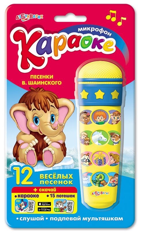 Какая игрушка превратит любой день в праздник? Конечно, удивительный микрофон-караоке! Подпевая любимым мультяшкам, малыши смогут почувствовать себя настоящими суперзвездами. В каждом микрофоне - 12 популярных песенок В. Шаинского, Е. Крылатова, М. Танича и других известных композиторов.