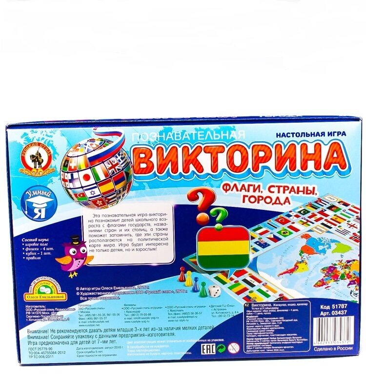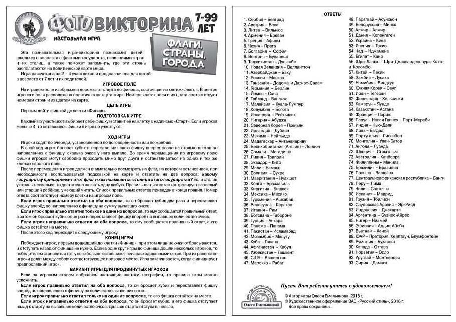 На сегодняшний день товар «Познавательная викторина Русский Стиль Флаги. Страны. Города (03437)» можно купить с кешбеком в 1 магазине: Яндекс.Маркет
