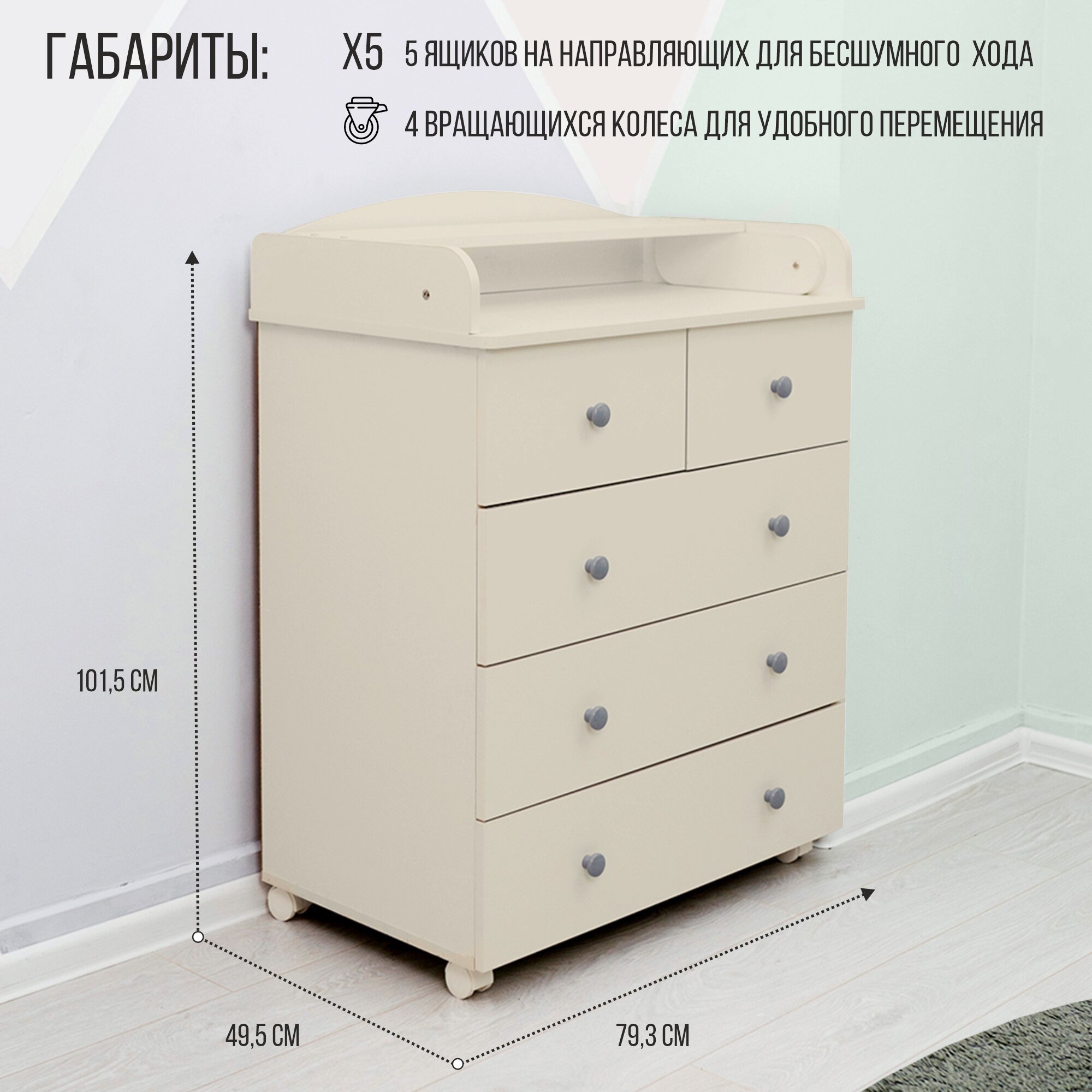 Комод Sweet Baby Marcello пеленальный (5 ящиков) на колесиках шириной 80 см с откидным пеленальным столиком и 5 вместительными ящиками для хранения. Для производства комода используются только экологически чистые материалы – безвредные для малыша. Корпус и фасады ящиков выполнены из ламинированной древесно-стружечной плиты (ЛДСП), соответствующих стандартам безопасности.