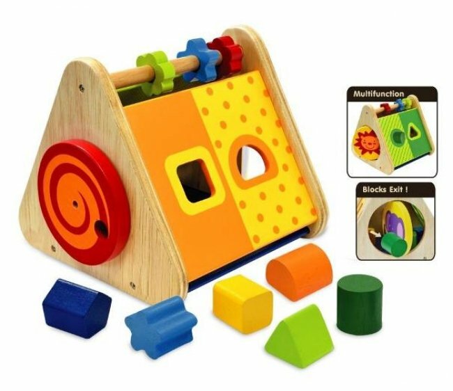 Деревянный сортер Развивающий треугольник от компании I'm Toy - это развивающая игрушка для детей в возрасте от 18 месяцев. Игрушка представлена в виде треугольной призмы, на боковых сторонах которой имеются отверстия различных форм. Задача состоит в том, что ребенку необходимо заполнить сортер фигурками, которые входят в комплект. Это станет возможным только тогда, когда форма фигурки совпадет с формой отверстия. Достать фигурки из сортера для повторных действий можно через специальные поворотные дверца, расположенные на треугольных основаниях призмы. Яркое, красочное развлечение поможет ребенку развить мелкую моторику рук, мышление и научит ребенка различать цвета и геометрические фигуры.